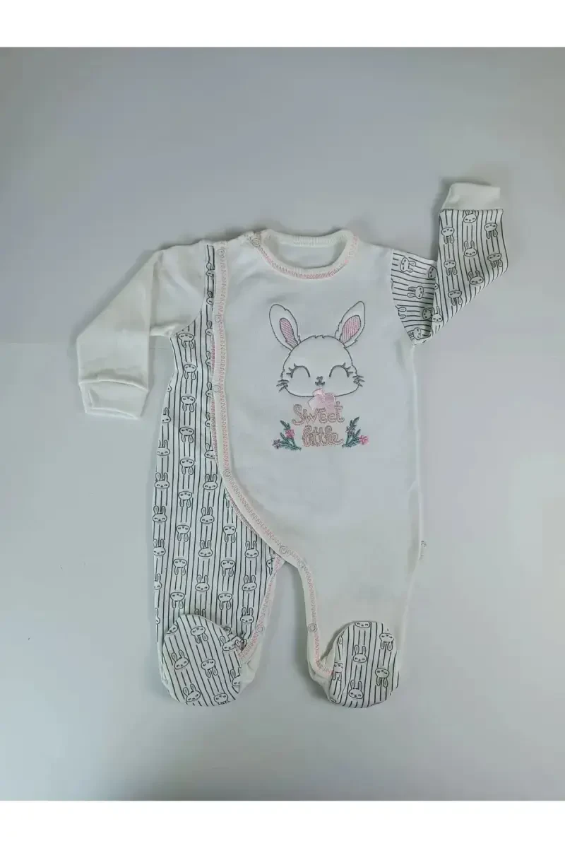 Детский комбинезон 100% хлопок - с вышивкой зайчика, на кнопках, антиаллергенный
