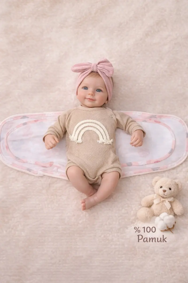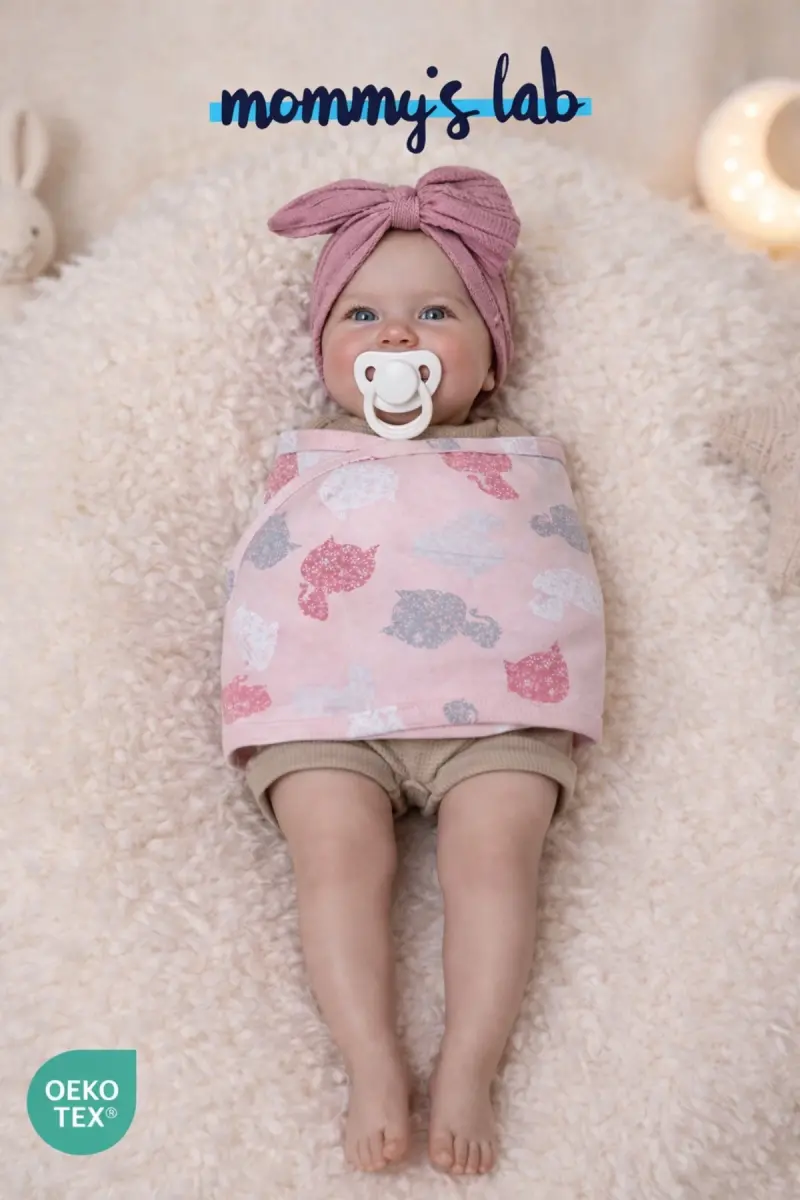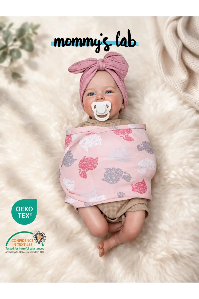 0-4 Ay Yeni Sezon Desenli Renkli % 100 Pamuk Hazır Yarım Kuşak Kundak Kemer (OEKO TEX CIF BELGELİ)-Kedi Desen Kız