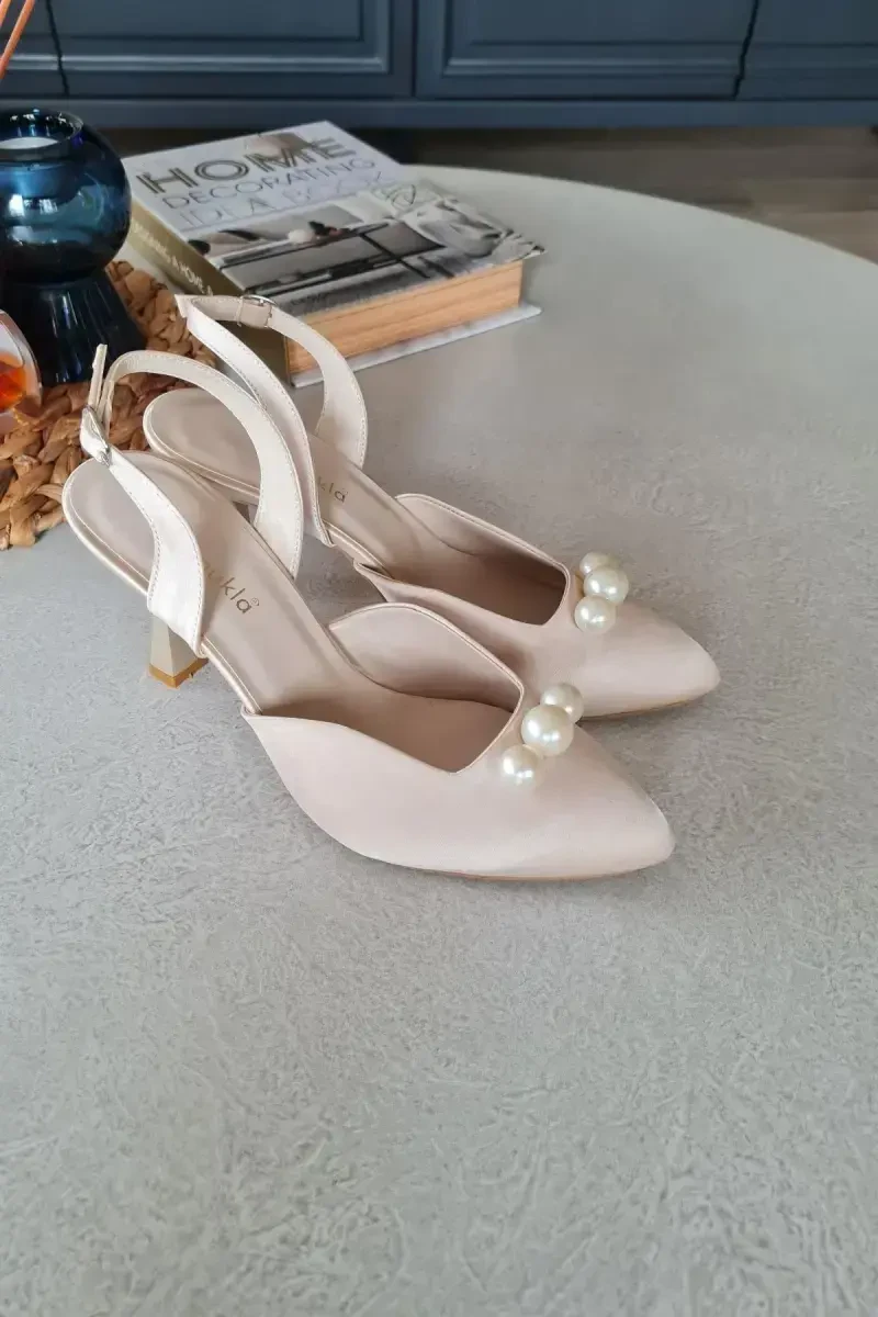 The shoe should be cleaned gently with a damp cloth. It should not be exposed to direct sunlight. It is recommended to store it in the shoe box for long-lasting use. Different size options are available. Heel height supports your posture while not restricting your freedom of movement. The elegance of satin fabric and the sparkle of pearls will add a sophisticated touch to any combination. Remember, the right shoe choice not only enhances your appearance, but also increases your self-confidence. Make a difference with every step with this special design shoe.