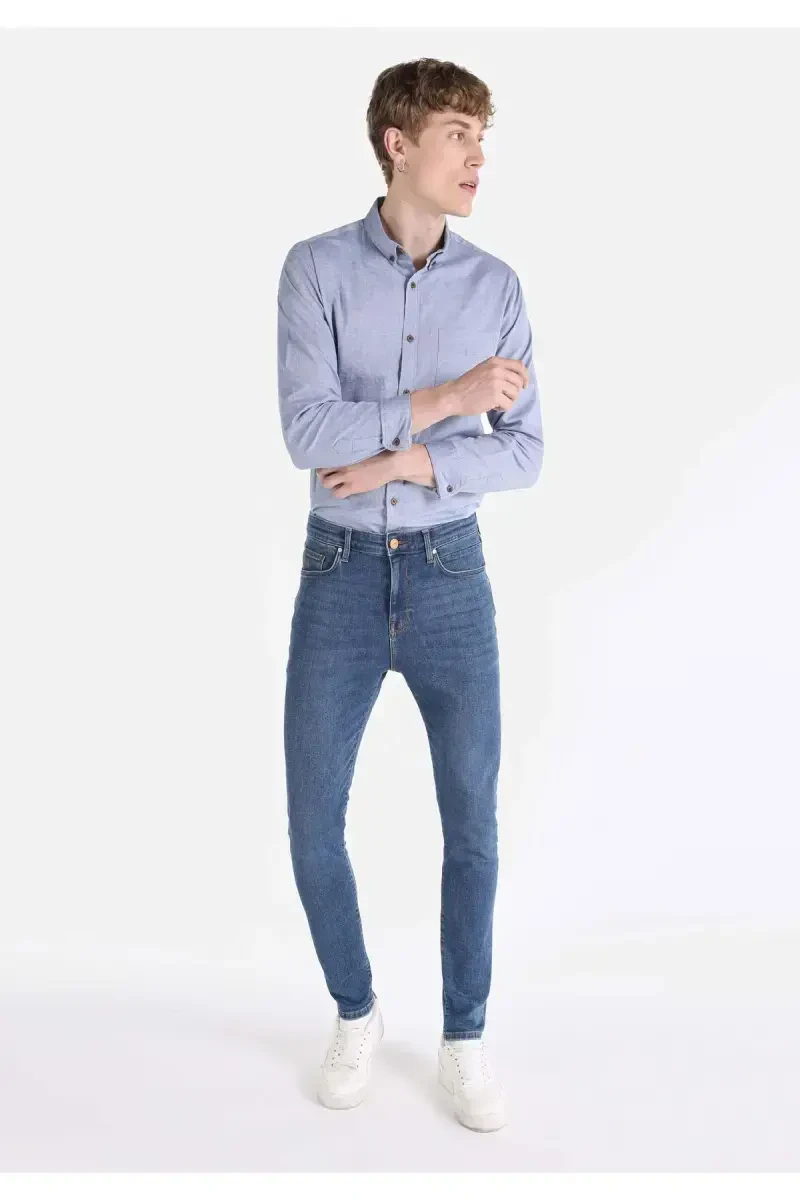 035 Ryan Super Slim Fit Yuqori Bel Tor Tanga Qorong'i Ko'k Erkaklar Shimini bilan uslubingizni yakunlang va har doim uslubli bo'ling!