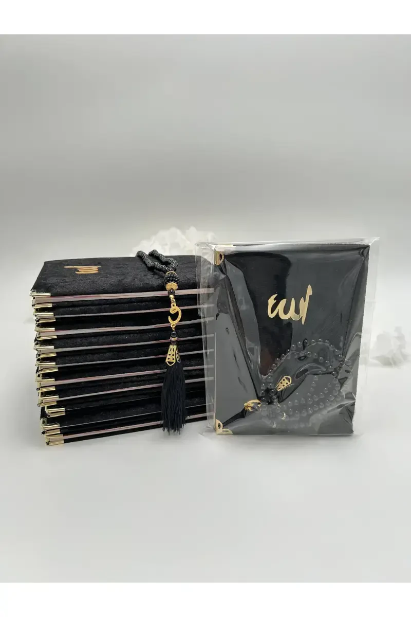 10 Pcs Black Velvet Yaseen Book and Pearl Rosary Set in Cellophane (Mawlid-Hajj-Umrah-Circumcision) - BLACK * Velvet Yaseen Book (128 Pages - Turkish Pronunciation - Barcoded) Dimensions: 12 x 16 cm Weight: 140 gr. * 99 Pearl Rosary * Packaged in Cellophane. * Labeled. Custom Label Design Available. * Minimum Order Quantity: 10 Pieces.Product DescriptionIf you want to give your loved ones a meaningful and lasting gift, the 10 Pcs Black Velvet Yaseen Book and Pearl Rosary Set in Cellophane is just for you! This elegant set will crown your special occasions and allow you to express your spiritual feelings in the most beautiful way. This stylish set, which you can distribute at special events such as Mawlid, Hajj, Umrah, and circumcision, will leave your loved ones with an unforgettable memory. The velvet Yaseen book, pearl rosary, and carefully prepared cellophane packaging included in the set make it a visually impressive and spiritually valuable gift option. This special set is the most beautiful way to strengthen the bond between you and your loved ones and show them the value you place on them. Combining the elegance of black and the elegance of velvet, this set will make your special days unforgettable. This gift set, with every detail carefully considered, reflects the value you give to your loved ones in the most beautiful way. This set, which prioritizes spirituality and deepens the meaning of special days, will be a gift that will be remembered for many years. Whether you choose it for yourself or for your loved ones, this set will always remain a special and meaningful gift. Thanks to its cellophane packaging, this set is hygienic and ready to use, and also provides ease of distribution. You can also personalize your gifts with the labeling option and add special notes to your loved ones. This set is not just a gift, but also an expression of love and respect.Product Features* Set Contents: 10 velvet Yaseen books and pearl rosaries* Yaseen Book: 128 pages, Turkish pronunciation, barcoded* Yaseen Book Size: 12 x 16 cm* Yaseen Book Weight: 140 gr* Rosary: 99 Pearl Rosary* Packaging: Cellophane packed* Label: Custom label design available* Color: Black* Minimum Order Quantity: 10 Pieces* Usage Areas: Mawlid, Hajj, Umrah, circumcision, special occasionsAdditional InformationThis special set is the most beautiful way to give your loved ones a gift with high spiritual value. The harmony of the velvet Yaseen book and pearl rosary increases the elegance and meaning of your gift. Thanks to its cellophane packaging, this set is hygienic and ready to use, and also provides ease of distribution. You can also personalize your gifts with the labeling option and add special notes to your loved ones. The minimum order quantity is 10. Please contact us for your bulk orders. For your special label requests, you can contact us after placing your order and submit your label design.
