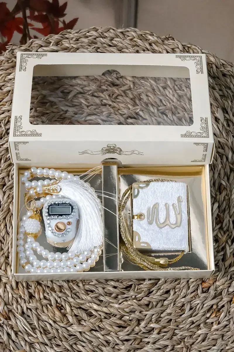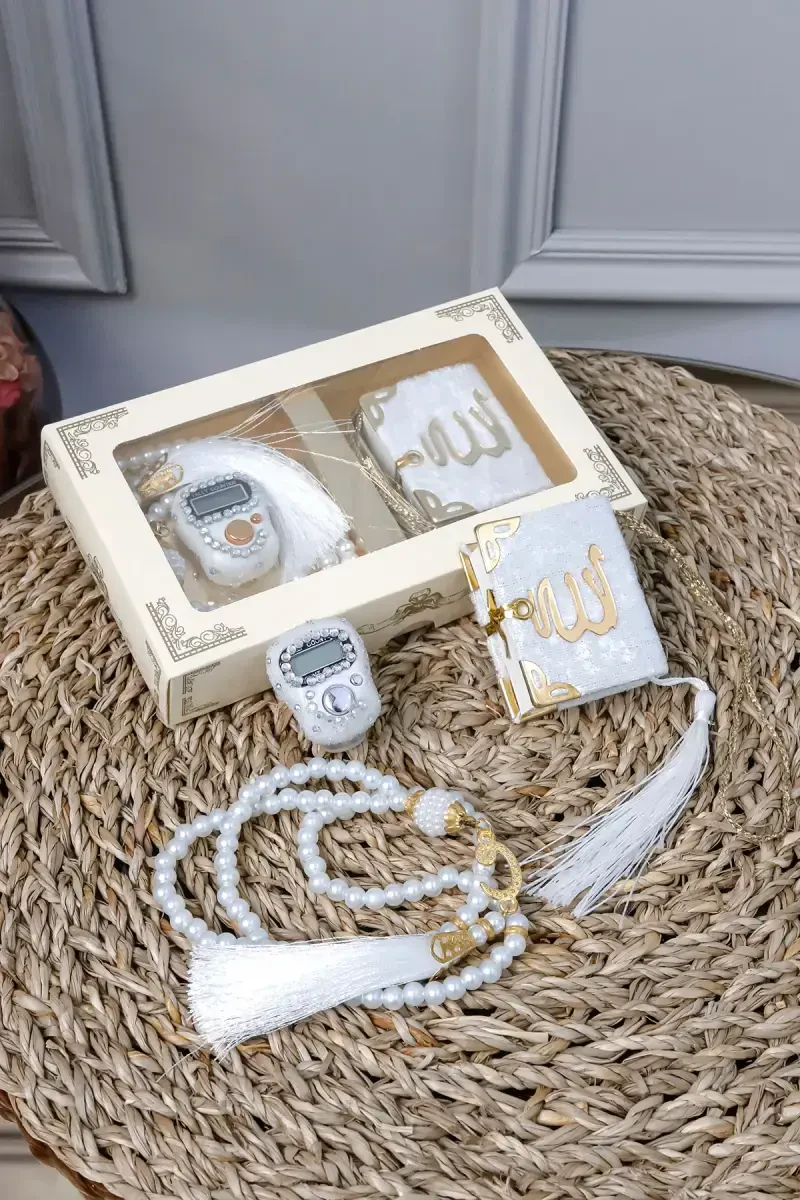 Zikrli sanagich, Mini Qur'on va Marvarid Tasbeh to'plami (10 dona) - Haj/Umra sovg'asi