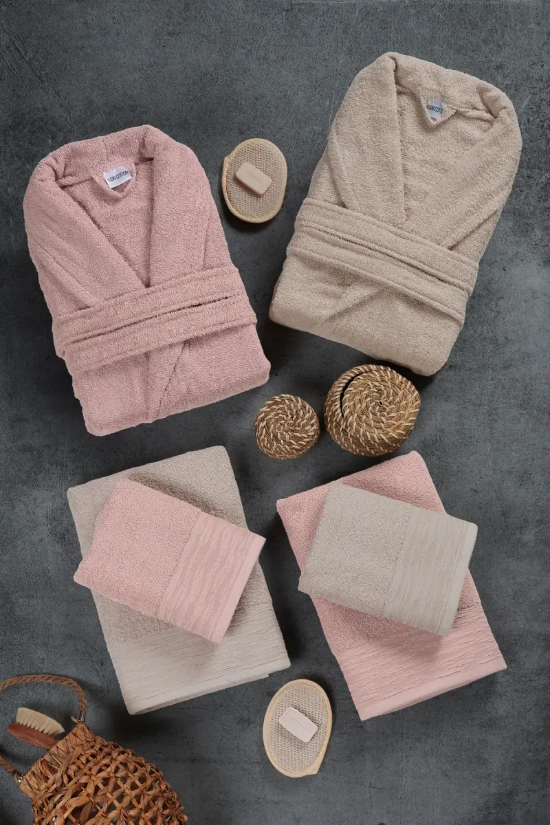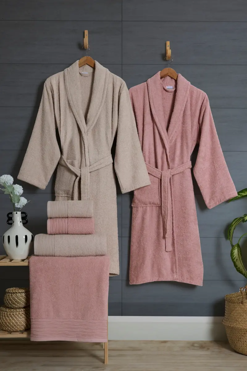 10 Parça Aile Seti Kadın & Erkek Bornoz Takımı | Yumuşak, Emici | Modern Tasarım | Lüks ve Konforlu-Kahverengi