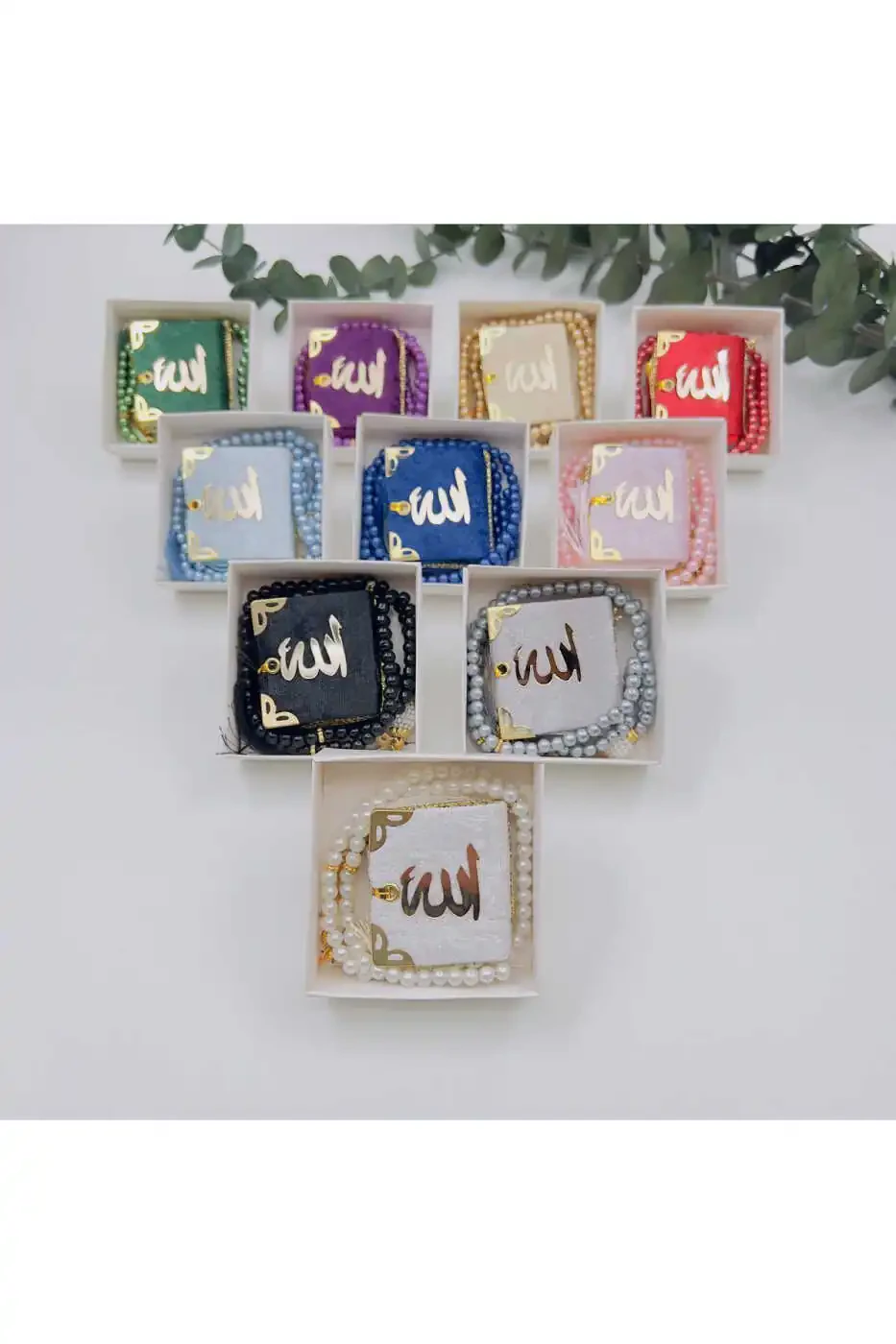 10 ta sovgʻa qutisi aralash rangdagi mini Qurʼon va marvarid tasbeh (Mavlid, Sunnat, Haj, Umra)