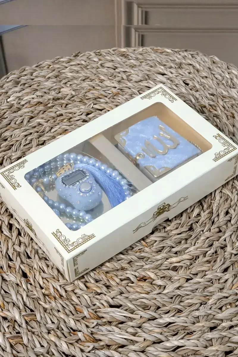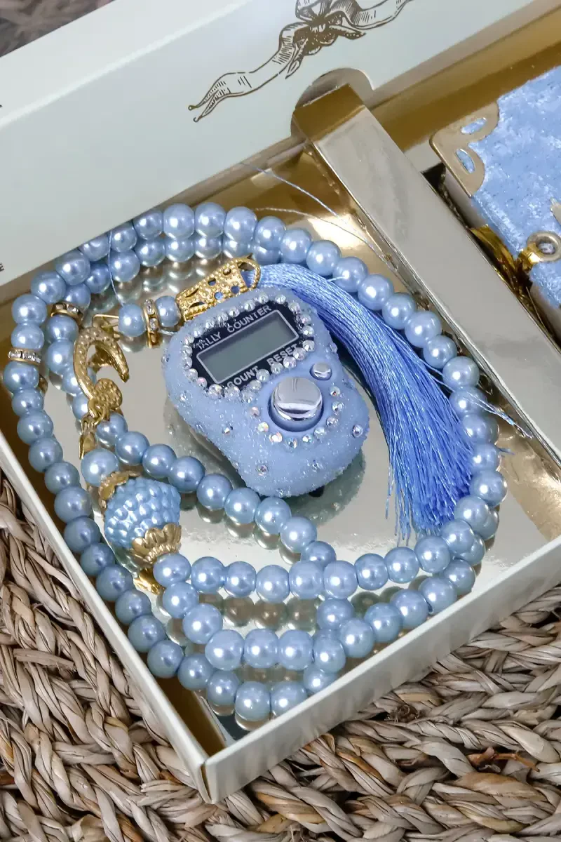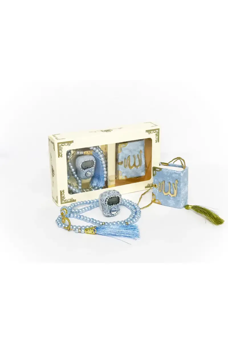 Moviy toshli zikrmatik to'plami: Baxmal Qur'on, 99 dona marjonli tasbeh | TesbiModazoneatik