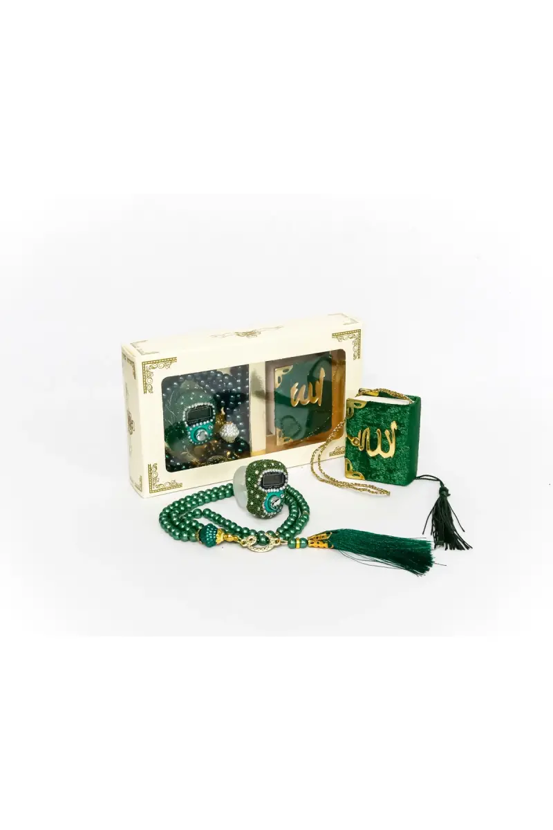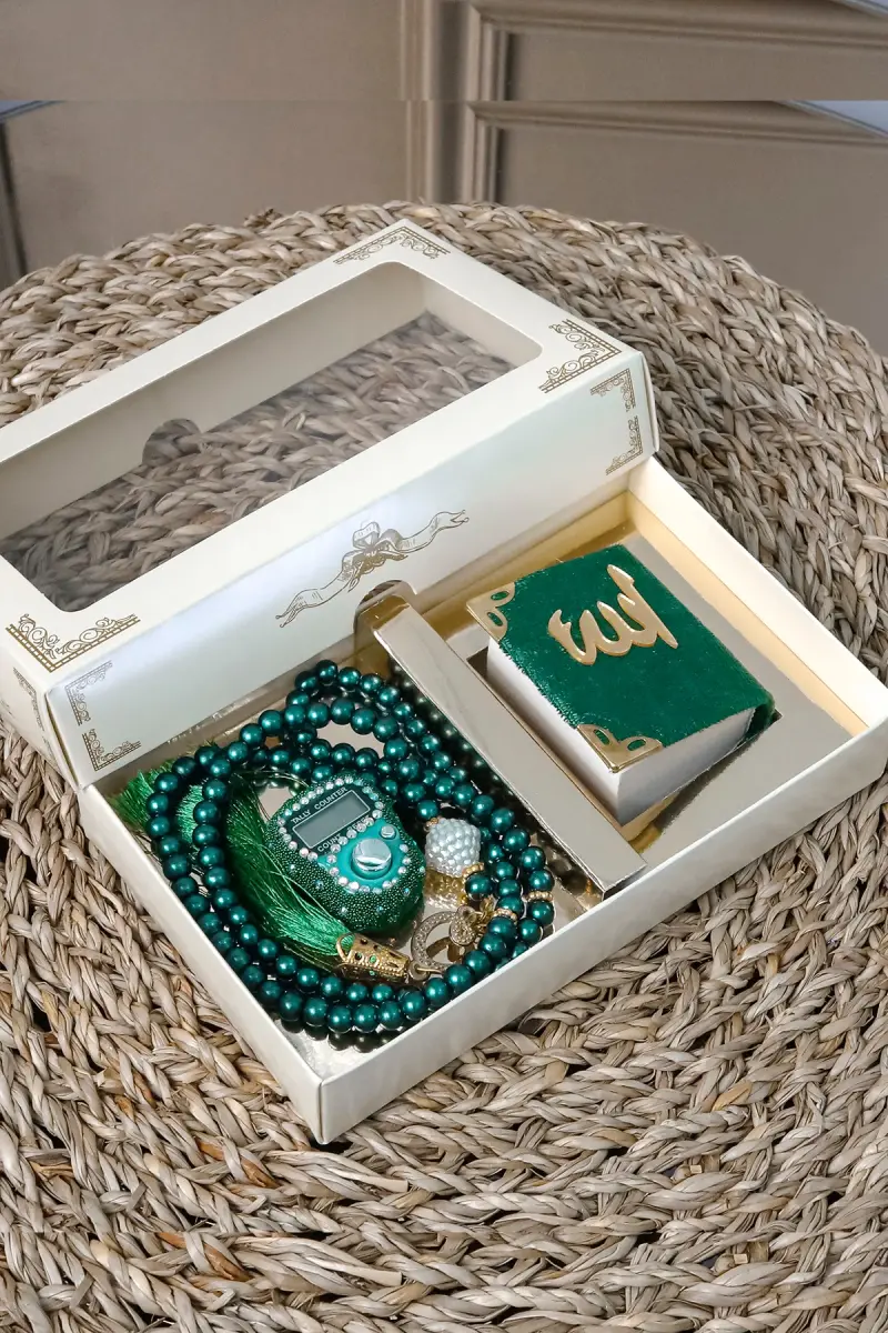 Özel günlerinizde sevdiklerinize anlamlı bir hediye vermek, manevi değerlerinizi ön plana çıkarmak ve onlara unutulmaz bir jest yapmak istiyorsanız, Taşlı Zikirmatik TesbiModazoneatik Kadife Kaplı Mini Kuran 99lu İnci Tesbih Seti tam size göre! Bu eşsiz set, zarafeti, maneviyatı ve kullanışlılığı bir araya getirerek sevdiklerinizin kalbine dokunacak. Hac, Umre, Mevlid, Nişan, Söz veya herhangi bir özel davet için mükemmel bir hediye seçeneği olan bu set, içeriğindeki her bir ürünle değerinizi gösterecek.Set içerisinde yer alan 99'lu inci tesbih, zarif tasarımı ve kaliteli malzemesiyle dikkat çekiyor. İnci tanelerinin oluşturduğu estetik görünüm, tesbih çekerken hem görsel bir keyif sunuyor hem de manevi huzurunuzu artırıyor. Püsküllü detaylarıyla zenginleştirilmiş bu tesbih, günlük ibadetlerinizde veya özel anlarınızda size eşlik edecek.Kadife kaplı mini Kuran-ı Kerim ise, setin en değerli parçalarından biri. Altın renkli köşe korumaları ve Allah (cc) lafzıyla süslenmiş bu mini Kuran, hem şık bir görünüme sahip hem de manevi anlamı büyük. 5 x 5 cm boyutlarıyla yanınızda kolayca taşıyabileceğiniz bu Kuran, her an Allah'ın kelamıyla bağlantıda kalmanızı sağlayacak. Kadife dokusu, Kuran'a dokunurken size ayrı bir huzur verecek.Setin en dikkat çekici özelliklerinden biri de Swaroski taşlı elektronik yüzük zikirmatik. Bu teknolojik tesbih, modern tasarımıyla geleneksel tesbih çekme alışkanlığınıza yeni bir boyut kazandırıyor. Parmağınıza yüzük gibi takarak kolayca zikir çekebilir, LCD ekranından kaç zikir çektiğinizi takip edebilirsiniz. 5 haneli ve 99999'a kadar sayabilen bu zikirmatik, hafızalı özelliği sayesinde bıraktığınız sayıdan devam etmenizi sağlıyor. Tavaf yaparken, yürürken, otobüste veya arabada rahatlıkla kullanabileceğiniz bu zikirmatik, her an zikir çekme imkanı sunarak manevi hayatınıza katkıda bulunuyor.Bu özel set, süslü asetat kutusu içerisinde sunulmaktadır. 16,5 x 10 x 3 cm boyutlarındaki bu kutu, hem ürünlerin güvenli bir şekilde taşınmasını sağlıyor hem de hediye sunumunuza şıklık katıyor. 108 gram ağırlığıyla hafif ve kullanışlı olan bu set, sevdiklerinize verdiğiniz değeri en güzel şekilde ifade etmenizi sağlayacak.Taşlı Zikirmatik TesbiModazoneatik Kadife Kaplı Mini Kuran 99lu İnci Tesbih Seti ile sevdiklerinize hem manevi bir hediye verin hem de onların hayatına dokunun. Bu set, özel anlarınızı daha anlamlı kılacak ve sevdiklerinizle aranızdaki bağı güçlendirecek. Her bir detayı özenle düşünülmüş bu set, kaliteden ödün vermeden maneviyatı ön planda tutanlar için ideal bir seçimdir. Unutmayın, bu set her siparişte 10 adet olarak gönderilecektir.