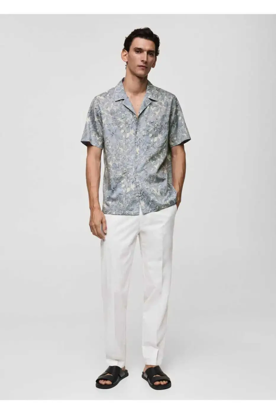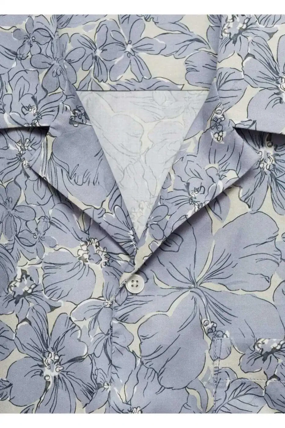 **100% Cotton Floral Pattern T-Shirt**This 100% cotton floral pattern t-shirt will be sent by **Mango**. This product can be sold by multiple vendors. A maximum of 10 orders can be placed for this product. The model's height is 185 cm and wears a size M.**Features:*** Regular fit* Floral pattern* Bowling collar* Button front* Short sleeves* Straight hem* Side seam length: 47.4 cm* Back length: 78.0 cm**Care Instructions:*** Machine wash max 30°C* Do not bleach* Iron max 110°C* Dry clean with perchloroethylene* Do not tumble dry