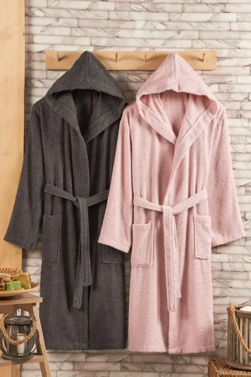 Meet the 100% Cotton Hooded 2-Piece Bathrobe Set designed for your comfort and convenience after bathing! This special set is made of high-quality cotton, offering a gentle touch to your skin, while its superior absorbency quickly dries your skin. The sophisticated and modern look of the anthracite color adds elegance to your bathroom, while the hooded design provides ease of use and practicality. After a tiring day, wrapping yourself in this bathrobe after a hot shower feels like a spa experience. It relaxes your skin with its soft texture and helps you easily dry your wet hair with its hood. Ideal for starting the day in the morning or relaxing in the evening, this set is both a useful and stylish option. Our bathrobe set not only combines comfort and elegance, but also offers long-lasting use. Thanks to its high-quality cotton yarn, it is resistant to repeated washing and maintains its original softness. The anthracite color is resistant to fading and maintains its vibrancy for many years. This set can be a perfect gift for yourself, as well as a meaningful gift you can give to your loved ones on special occasions. You can gift your loved ones a luxurious and comfortable experience on special occasions such as birthdays, wedding anniversaries or housewarming.