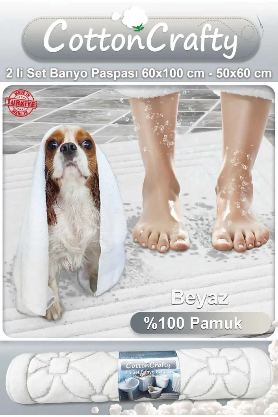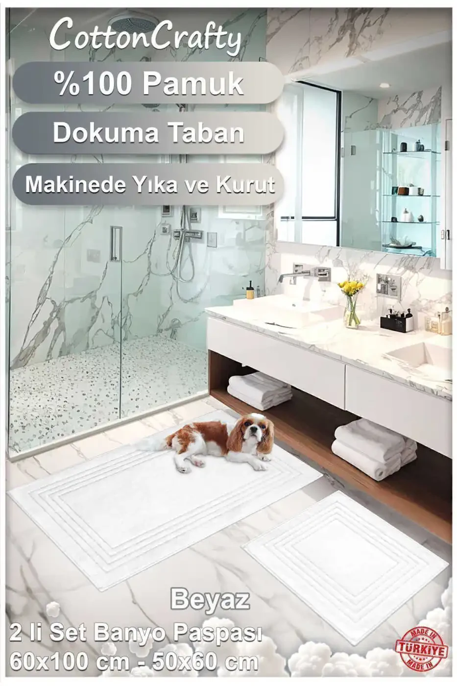 The Vera 2-piece 100% Cotton Woven Absorbent Bath Mat Set brings luxury and comfort to your bathroom. With two mats measuring 60x100 cm and 60x50 cm, you can furnish every corner of your bathroom with style and softness. Made from high-quality 100% cotton woven material, these mats offer a gentle touch to your feet while their superior water absorption keeps your bathroom floor dry and clean after showering. The medium pile height (612 mm) provides an unparalleled soft feeling underfoot, while the non-slip backing ensures maximum safety. With its stylish design and practical use, the Vera Bath Mat Set will add a modern touch to your bathroom and simplify your daily life. Don't miss out on this limited-time promotional price! Our stock is limited, order now.