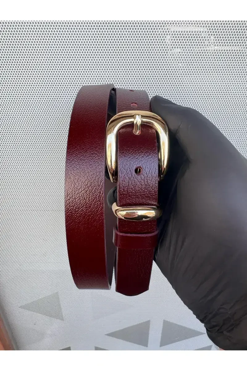 Bordo Teri Kamar | Tilla Tokali Haqiqiy Teri Ayollar Kamari - 3cm