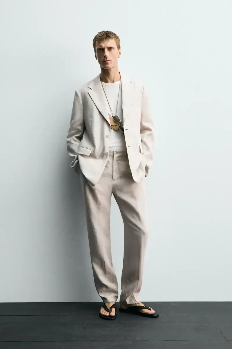 Shkafingizning ajralmas qismi bo'ladigan 100% zig'ir kostyum blazeri bilan nafislik va qulaylikni his qiling. Tabiiy zig'ir matosining yengilligi va nafas oladigan tuzilishi, ayniqsa, issiq havoda kun bo'yi qulaylikni ta'minlaydi. Muntazam bichimli kesimi tufayli tanaga mos tushadigan, ammo harakatlanish erkinligingizni cheklamaydigan bu blazer kundalik foydalanish va maxsus kunlar uchun ideal tanlovdir. Blazer kurtkamizning ichki qismi yarim astarli qilib ishlangan. Shu tarzda, kurtkaning yengilligi saqlanib qoladi va kiyish qulayligi oshiriladi. Tishli yoqa detallari klassik va oqlangan ko'rinishni ta'minlaydi, manjetlardagi tugmalar esa nafislikni to'ldiradi. Uzun yengli dizayn uni har mavsumda ishlatishga imkon beradi. Funktsionallik ham hisobga olingan holda ishlab chiqilgan ushbu blazer qulay cho'ntak detallariga ega. Ko'krakdagi hoshiyali cho'ntak ro'molcha yoki kichik aksessuarlar uchun ideal joy bo'lsa, son qismidagi qopqoqli cho'ntaklar ko'proq narsalarni olib yurishga imkon beradi. Ichki cho'ntak detali esa qimmatbaho narsalaringizni xavfsiz saqlash uchun mo'ljallangan. Orqa yirtqichli dizayn kurtkaning harakat erkinligini oshiradi, shuningdek, zamonaviy ko'rinish beradi. Old tugma bilan mahkamlash klassik blazer ko'rinishini saqlab qoladi, shu bilan birga uni osongina kiyib echish imkonini beradi. 100% zig'ir kostyum blazeri nafislik va qulaylikni birlashtirgan, shkafingizning ajralmas qismiga aylanadi. Xoh kundalik kombinatsiya bilan sportli zamonaviy ko'rinishga ega bo'ling, xoh maxsus kechada nafisligingizni to'ldiring; bu blazer har qanday muhitda sizga hamroh bo'ladi. Zig'irning tabiiy tuzilishi va zamonaviy kesimi bilan ajralib turadigan ushbu blazer o'z uslubingizni aks ettirishning eng yaxshi usuli hisoblanadi. Sifatli material va ehtiyotkorlik bilan ishlangan ushbu blazer shkafingizda ko'p yillar davomida o'z o'rnini saqlab qoladi. Nafislik va qulaylikni bir vaqtda izlayotgan erkaklar uchun mukammal tanlov bo'lgan 100% zig'ir kostyum blazeri bilan uslubingizni bir qadam oldinga olib chiqing.