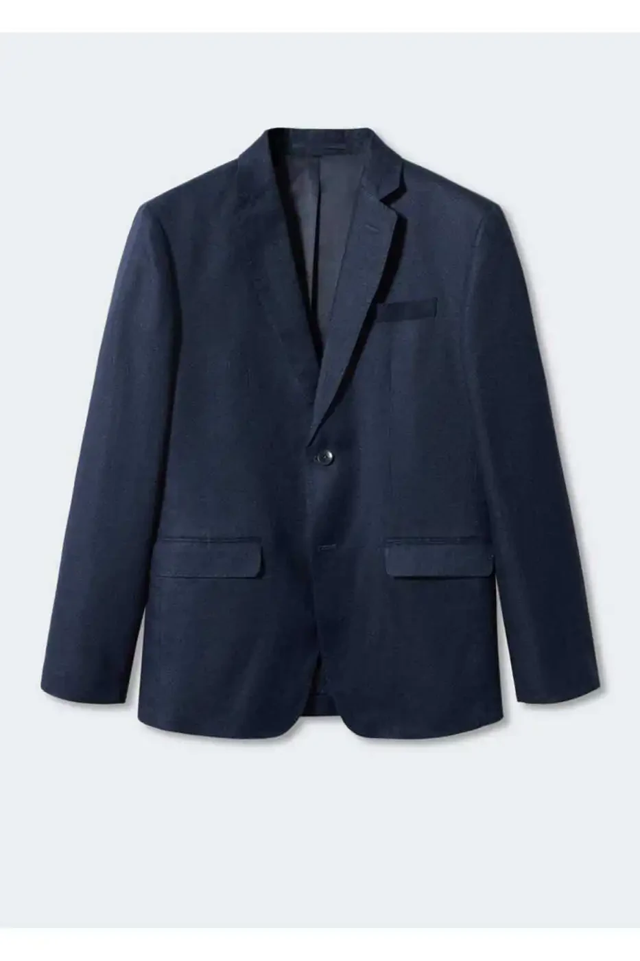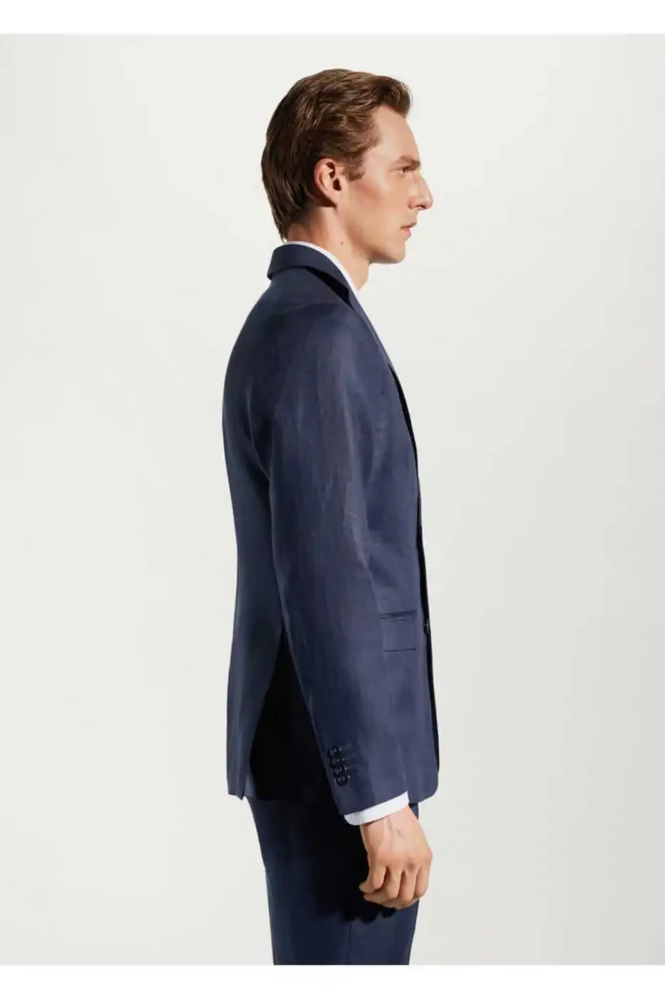 * Slim fit* Linen blend fabric* Regular design* Notched lapel* Front button closure* Long sleeves with buttoned cuffs* Chest welt pocket* Two front flap pockets* Straight hem* Double vented* Lined* Three interior pockets
