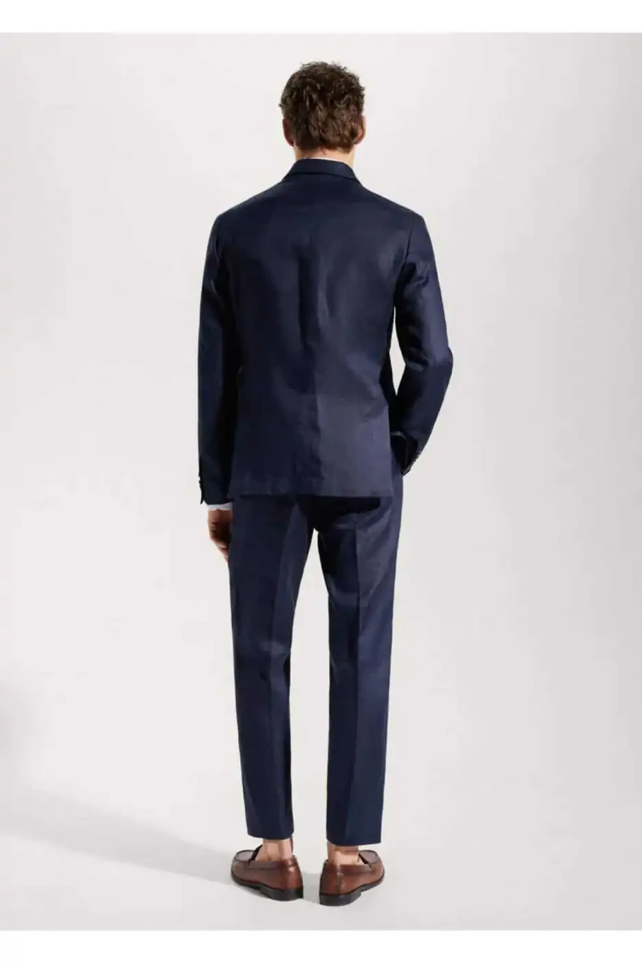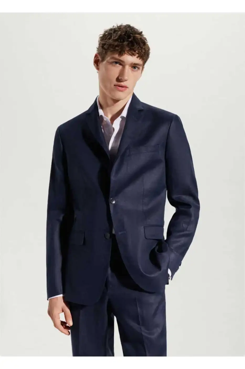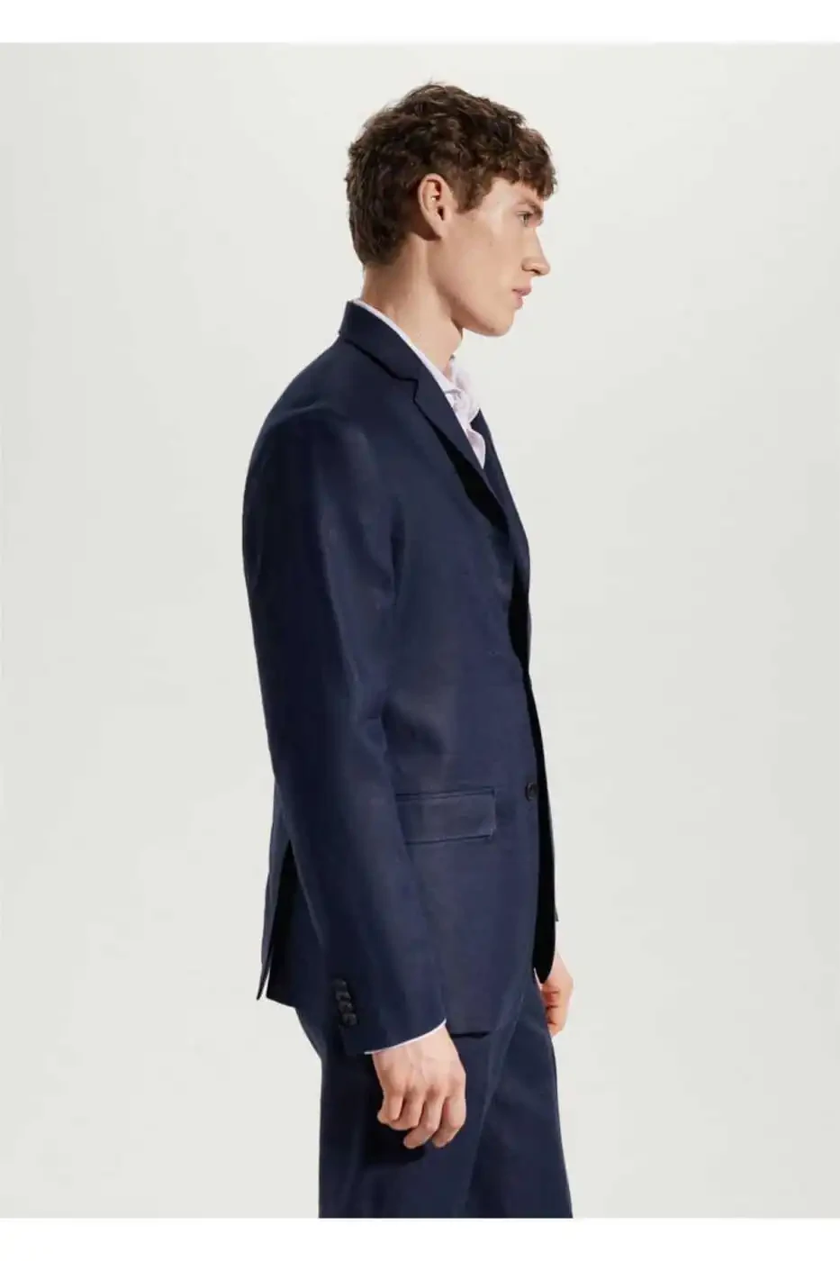 **100% Linen Slim Fit Fabric Blazer Jacket****Product Information:*** **Fabric:** 100% linen* **Lining:** 53% polyester, 47% viscose* **Lining Pocket:** 65% polyester, 35% cotton* **Side Seam Length:** 19.6 in* **Back Length:** 31.2 in**Features:*** Slim fit* Lightweight fabric* Standard design* Notch lapel* Front button closure* Breast welt pocket* Two front flap pockets* Long sleeves with buttoned cuffs* Straight hem* Lined* Three interior pockets**Usage:*** Slim-Fit suit with a slightly slimmer fit than a Regular Fit* Can be paired with a sweater or t-shirt for a more casual look* Can be worn with a classic shirt and tie for special occasions* Can be combined with a coat and sweater for winter looks**Care Instructions:*** Do not wash* Do not bleach* Iron at a maximum of 110°C* Dry clean with perchloroethylene* Do not tumble dry**Fast and Easy Shopping from Trendyol:*** This product is shipped quickly and securely by Trendyol.* More than 5 pieces are offered for sale at a discounted price.* 15 days free return option is available.