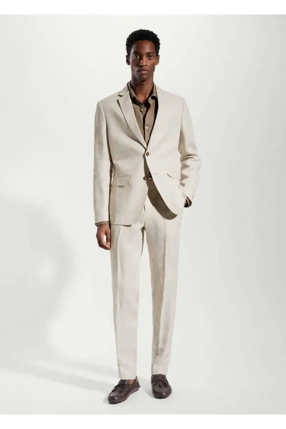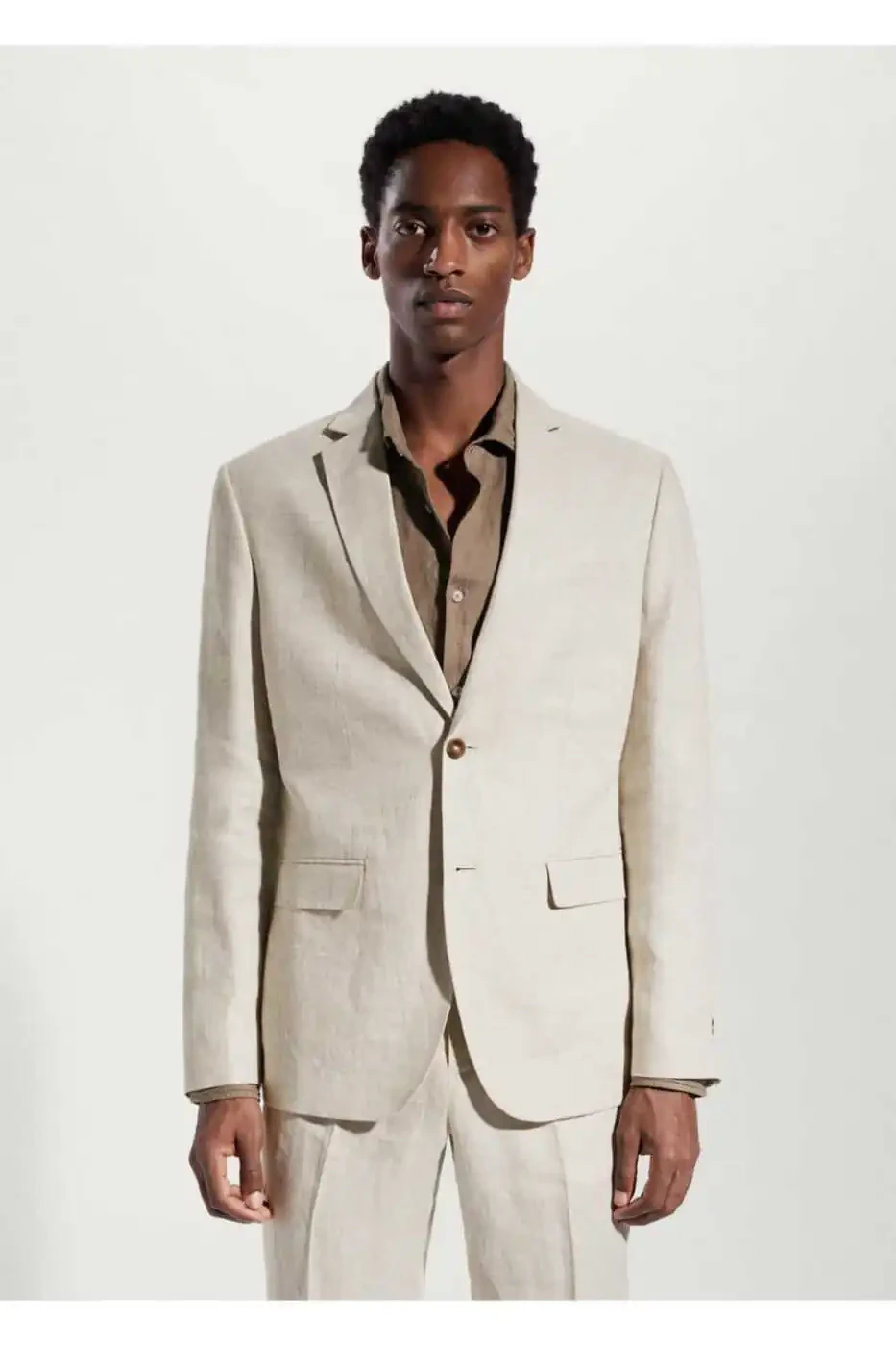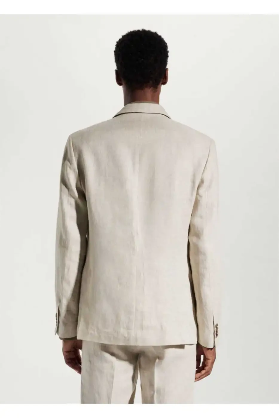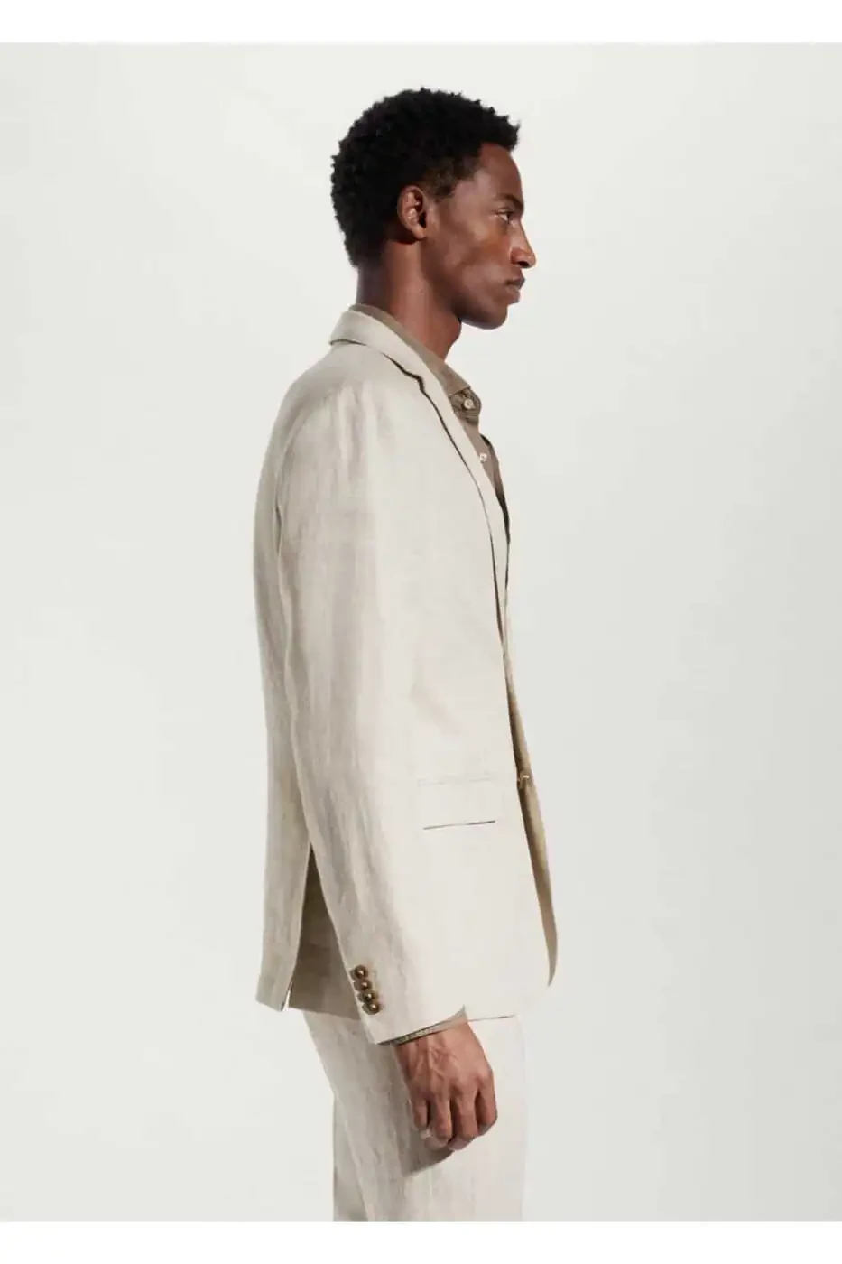 **100% Linen Slim Fit Fabric Blazer Jacket****Product Description:**This product will be shipped by **Trendyol**. Only 5 items are available for sale at the campaign price.**Product Features:*** **Fabric:** 100% Linen* **Cut:** Slim Fit* **Collar:** Turndown collar* **Closure:** Front button closure* **Pockets:** Chest welt pocket, two front pockets* **Sleeves:** Long, buttoned cuffs* **Lining:** Yes* **Inside Pockets:** 3**Measurements:*** Side seam length: 49.7 cm* Back length: 79.1 cm**Care Instructions:*** Do not wash* Do not bleach* Iron at maximum 110°C* Dry clean with perchloroethylene* Do not tumble dry**Usage Areas:*** Slim Fit blazer jacket has a slightly more fitted cut to the body and is suitable for formal events.* For a more casual look, you can combine it with a sweater or T-shirt.* For special occasions, you can choose a classic shirt and tie.**Brasilia Collection:**Our Brasilia collection, consisting of a blazer jacket and fabric trousers, features different designs.**Mixed Patterned Look:**If you are looking for something different, we recommend our Italian tailored products.**Winter Combinations:**You can also use your suits in winter months with our suitable coat and sweater options.