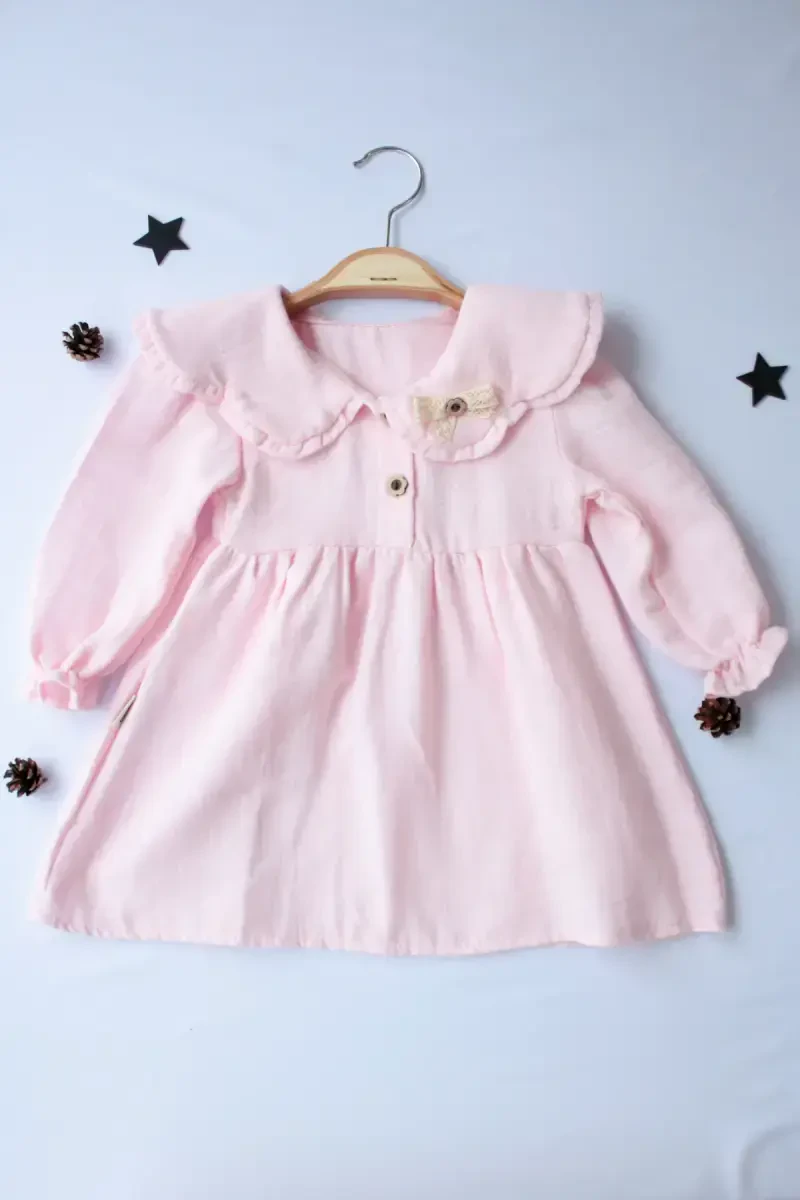 Minik prensesiniz için tasarlanmış, %100 organik pamuk müslin kumaştan üretilmiş bu şirin elbise, hem rahatlığı hem de şıklığı bir arada sunuyor. Bebeğinizin hassas cildine zarar vermeyen, özel olarak seçilmiş organik pamuk iplikleri kullanılarak dokunmuş çift kat müslin kumaşı, gün boyu nefes alabilen ve yumuşak bir dokunuş sağlar. Bu sayede bebeğinizin cildini tahriş etmeden konforlu bir kullanım sunar. Elbisenin büzgülü detayları, ona sevimli ve hareketli bir hava katarken, sade tasarımı her ortama uyum sağlamasına yardımcı olur. İster günlük oyun aktivitelerinde, ister özel bir günde, bu elbise bebeğinizin her zaman şık ve rahat hissetmesini sağlayacak. Pembe rengin tatlılığı ile birleşen bu özellikler, elbiseyi vazgeçilmez kılacak. 6-24 ay arası kız çocukları için ideal olan bu elbise, bebeğinizin büyüme evrelerinde ona eşlik edecek, onunla birlikte anılar biriktireceğiniz özel bir parça olacak. Organik pamuğun doğal yapısı sayesinde alerjik reaksiyon riski en aza indirilmiştir, bu da annelerin içini rahatlatır. Elbisenin hafif yapısı, bebeğinizin hareket özgürlüğünü kısıtlamaz, böylece oyun oynarken veya keşif yaparken rahatça hareket edebilir. Aynı zamanda elbisenin kolay giyilip çıkarılabilmesi de anneler için büyük bir kolaylık sağlar. Bu %100 organik pamuk müslin elbise, bebeğinizin gardırobunun en sevilen parçası olmaya aday. Hem şık hem de sağlıklı bir seçim olan bu elbise, bebeğinizin mutluluğuna mutluluk katacak.