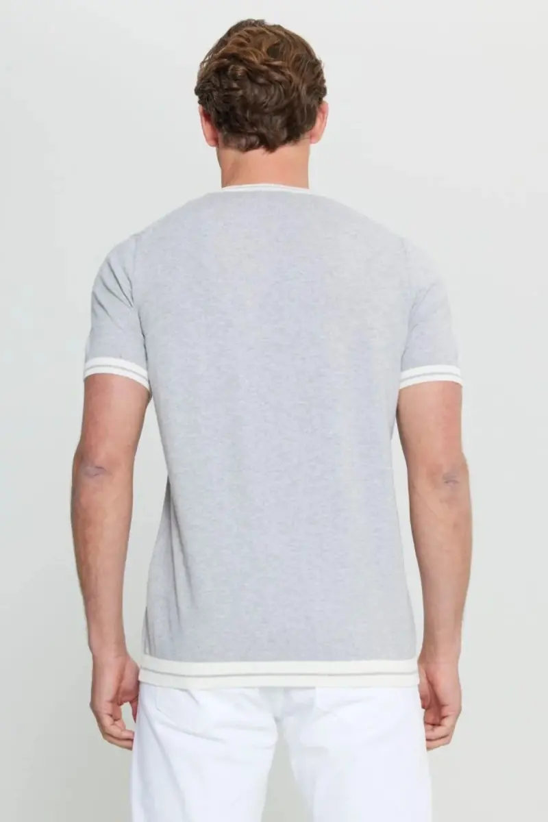 %100 Pamuk Standart Fit Normal Kesim Bisiklet Yaka Açık Gri Melanj Erkek T-Shirt-Açık Gri Melanj