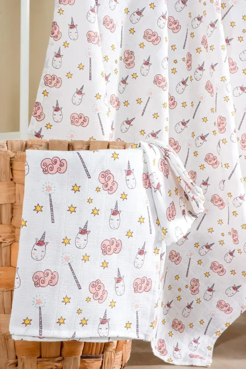 %100 Paxta Muslin Chaqaloq O‘rash Komplekti bilan chaqalog‘ingizning nozik terisiga eng muloyim teginishni taqdim eting. Unicorn naqshli nafislik va yoqimli dizaynni birlashtirgan ushbu 2 qismli komplekt chaqalog‘ingizning qulayligi va salomatligini birinchi o‘ringa qo‘ygan holda ishlab chiqarilgan. 100x100 sm o‘lchamlari bilan ideal o‘lchamdagi ushbu muslin o‘ramlari ko‘p maqsadli foydalanish imkoniyatini taqdim etib, onalarning hayotini osonlashtiradi. Chaqaloq adyoli, emizish uchun o‘rash, aravacha o‘rashi, taglik almashtirish matosi yoki yelka matosi sifatida ishlatishingiz mumkin bo‘lgan ushbu o‘ramlar chaqalog‘ingizning har doim yonida bo‘ladigan ajralmas buyumidir. Yumshoq to‘qimasi tufayli chaqalog‘ingizning terisini tirnash xususiyati keltirmaydi va qulay uyquni ta’minlaydi. Havo o‘tkazuvchan tuzilishi bilan terlashning oldini oladi, shu bilan chaqalog‘ingizning terisini sog‘lom saqlashga yordam beradi. Oson yuviladigan va dazmollanadigan xususiyati tufayli gigienik foydalanishni ta’minlaydi. Unicorn naqshli ushbu nafis va qulay muslin o‘rash komplekti ham o‘z chaqalog‘ingiz uchun, ham yaqinlaringizga sovg‘a sifatida ajoyib tanlovdir. Mahsulotimiz OEKO-TEX sertifikatiga ega, ya’ni uni ishlab chiqarishda zararli kimyoviy moddalar ishlatilmagan. Chaqalog‘ingizning salomatligi uchun bemalol tanlashingiz mumkin. Muslin matoning tabiiy tuzilishi har yuvishda yanada yumshoqroq bo‘lishini ta’minlaydi, shuning uchun chaqalog‘ingizning terisiga teginishi har doim birinchi kundagidek qoladi. Unicorn naqshining yorqin ranglari chaqalog‘ingizning xonasiga quvonch bag‘ishlaydi, shu bilan uyqu vaqtini yanada yoqimli qiladi. Bundan tashqari, ushbu naqshlar chaqaloqlarning vizual idrokini rivojlantirishga ham yordam berishi mumkin. Ikki dona o‘ramdan iborat ushbu komplekt foydalanish qulayligi va amaliyligini taqdim etadi. Bir o‘ramni ishlatayotganda, ikkinchisini yuvishingiz yoki zaxirada saqlashingiz mumkin. Shunday qilib, har doim toza va foydalanishga tayyor o‘ramingiz bo‘ladi. Onalik sayohatingizda sizga hamroh bo‘ladigan ushbu muslin o‘rash komplekti chaqalog‘ingizning qulayligi va salomatligini birinchi o‘ringa qo‘ygan holda ishlab chiqilgan. Chaqalog‘ingizning nozik terisiga zarar yetkazadigan hech qanday modda o‘z ichiga olmaydigan ushbu o‘ramlar bemalol ishlatishingiz mumkin bo‘lgan ishonchli tanlovdir. Unicorn naqshli muslin o‘ramlarimiz chaqalog‘ingizning birinchi kunlaridan boshlab unga hamroh bo‘ladi va unutilmas xotiralar to‘plashingizga yordam beradi. Har bir teginishida sevgi va e’tibor mujassam bo‘lgan ushbu o‘ramlar chaqalog‘ingizning eng qimmatli buyumlaridan biri bo‘ladi.Mahsulot xususiyatlari