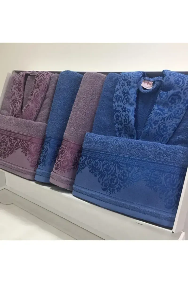 Paxta oilaviy xalat to‘plami to‘q binafsha rang | Yumshoq va qulay | Yuqori shimuvchanlik