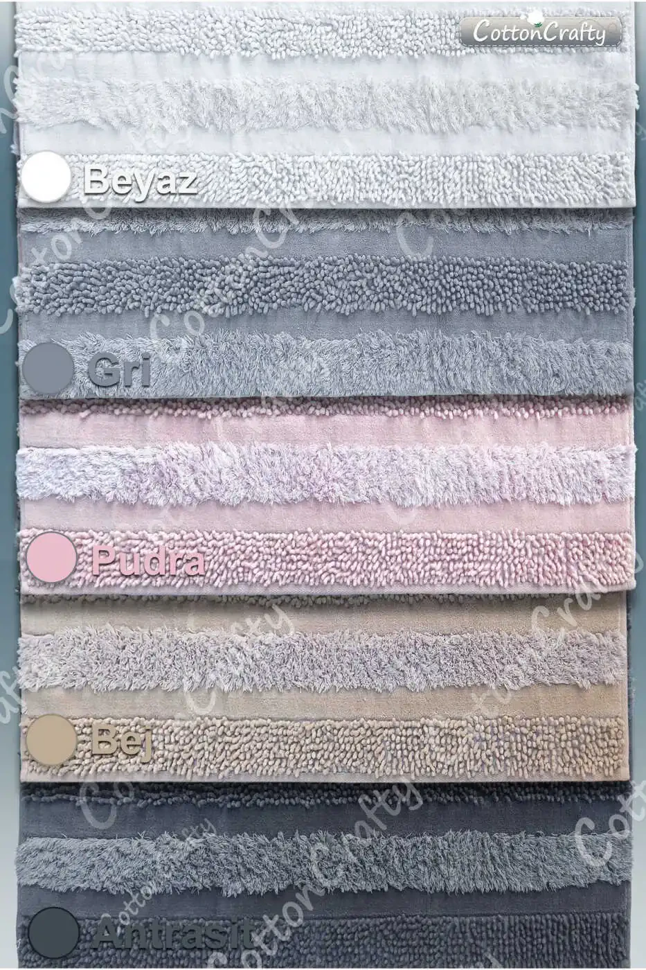 Ҳаммомдаги ҳашамат ва қулайликни бирлаштирувчи 100% пахта тўқима ва тафтинг ҳаммом гилами ARMONİ 2-қисмли тўплами билан танишинг! 60x100 см ва 60x50 см ўлчамдаги икки хил ўлчамдаги гиламларимиз ҳаммомингизнинг ҳар бир бурчагига замонавийлик ва қулайлик бағишлаш учун мўлжалланган. Юмшоқ, нафас олувчи ва терингизга юмшоқ 100% пахта тўқимасидан тайёрланган гиламларимиз ҳаммомдан кейин оёқларингизнинг дам олиши учун идеал муҳит яратади. Ўртача юқорилик (6-12 мм) оёқларингизга юмшоқ ва хотиржамлик бағишлайди, шу билан бирга, сирпанмас тагли туфайли хавфсизлигингиз ҳам таъминланади. Ҳам замонавийликни, ҳам функционалликни бирлаштиришни истаганлар учун мукаммал танлов бўлган ARMONİ тўплами ҳаммомингизда ўз услубингизни акс эттиришга ёрдам беради. Кенг захираларимиз билан акция нархидан фойдаланиб, бу бетакрор тўпламни дарров сотиб олишингиз ва ҳаммомингизда хотиржам дам олишингиз мумкин. Маҳсулотимиз CottonCrafty томонидан жўнатилади ва 15 кун ичида бепул қайтариш имкониятини тақдим этади. Батафсил маълумот учун қайтариш шартларини кўриб чиқишингиз мумкин. Корпоратив буюртмалар учун бошқа лимитлар амал қилиши мумкин, бироқ шахсий буюртмаларда ҳар бир киши учун кўпи билан 10 та буюртма берилиши мумкин. 10 тадан ортиқ буюртмалар Trendyol томонидан бекор қилиниши мумкин.