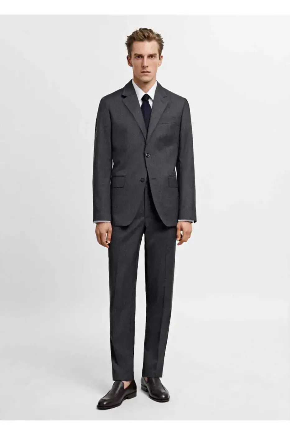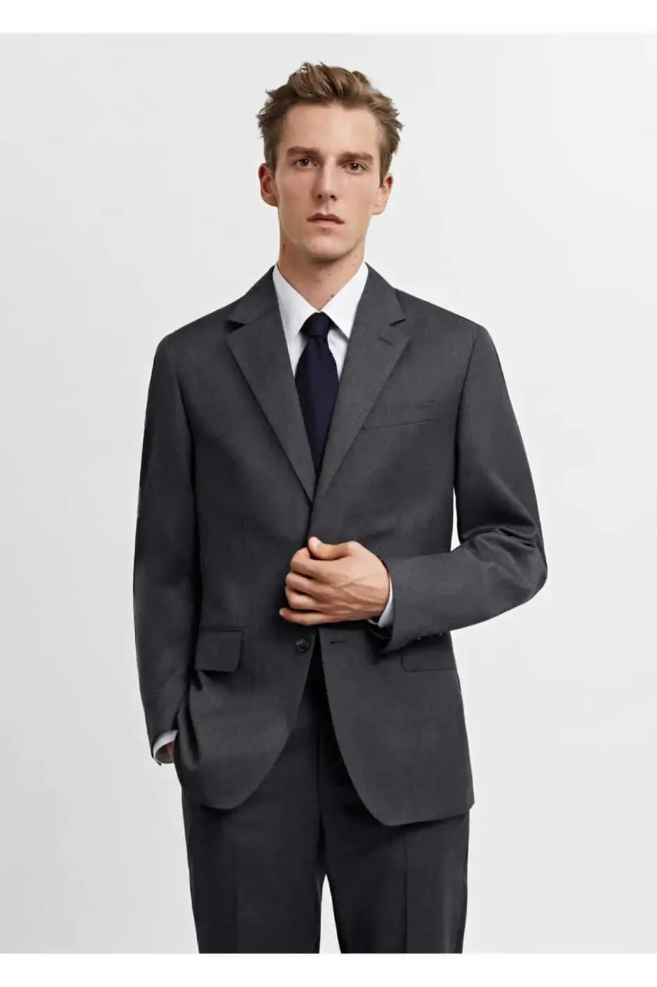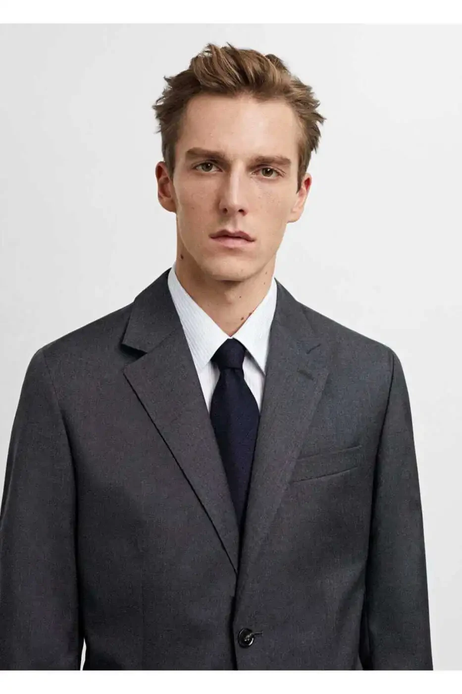 Made from 100% pure wool, this blazer jacket combines style and comfort to create the perfect addition to your suit combinations. Its slim cut fits your body perfectly, while its collared design gives it a classic look. The front button closure, chest welt pocket, and two front flap pockets provide functionality. The long sleeves and buttoned cuffs, along with the straight hem, create a stylish look. The inside pocket and lining offer a comfortable wearing experience. Part of the suit collection, this blazer jacket has a Slim Fit cut that fits even closer to your body. Ideal for those who prefer a classic cut, this jacket does not accentuate the silhouette too much. Available in different models, Slim Fit blazer jackets come in double-breasted, linen, wool, and classic options to suit every taste. For a more casual look, you can combine it with a sweater or T-shirt, and for special occasions, complete it with a classic shirt and tie. 100% untreated wool, lining: 52% viscose, 48% polyester, and sleeve lining: 70% viscose, 30% polyester. Side seam length is 50.0 cm, back length is 79.1 cm. Follow the care instructions to maintain its elegance for many years: Do not wash, do not bleach, iron at max. 110°C, dry clean with perchloroethylene, do not tumble dry.