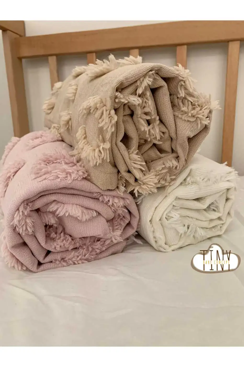 Chaqalog'ingizning sog'lig'i va qulayligi uchun eng yaxshi tanlov bo'lgan 100% shönil pike pomponli maxsus dizayn matolari chaqaloq kundak adyol, shuningdek, ajoyib sovg'a variant hisoblanadi.