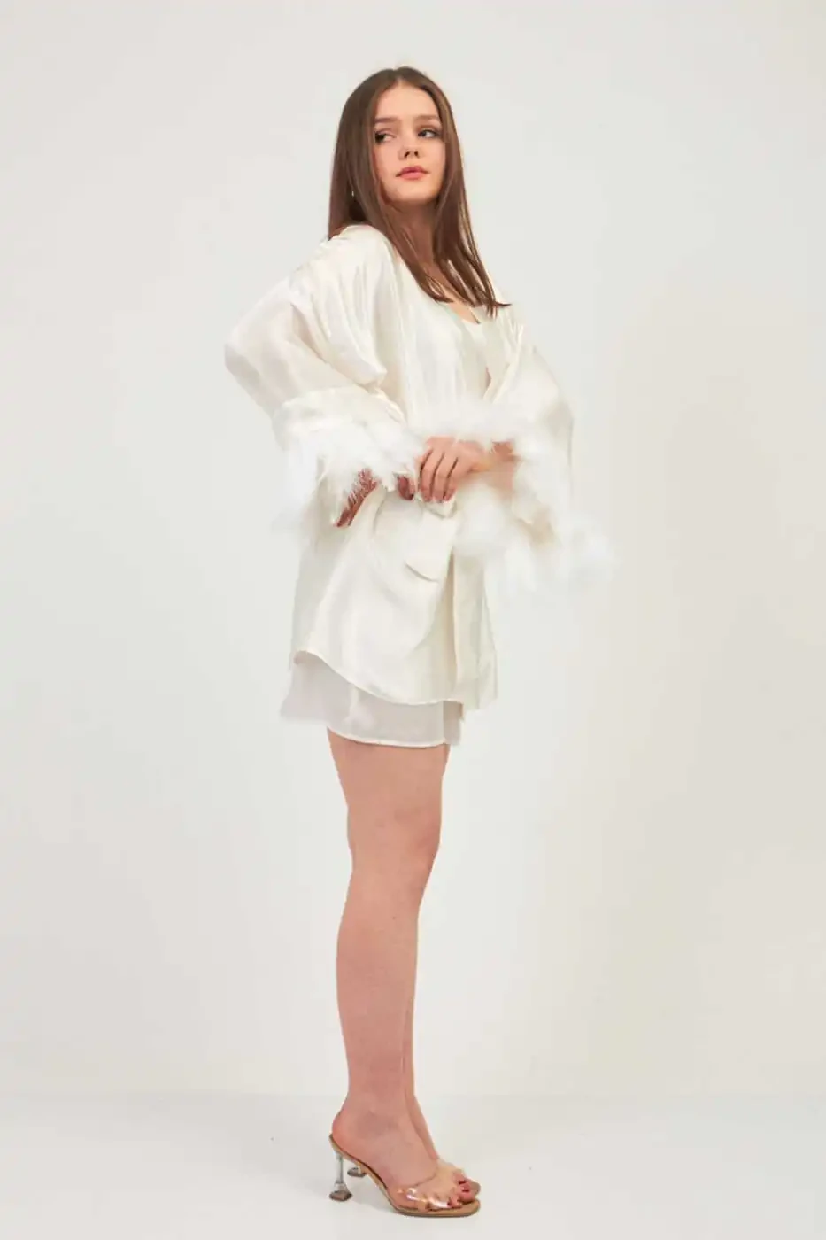 The ecru color and elegant design make the kimono/robe a perfect complement to your wedding dress, making you even more special and dazzling. Its simple and elegant look is a perfect choice for every bride.