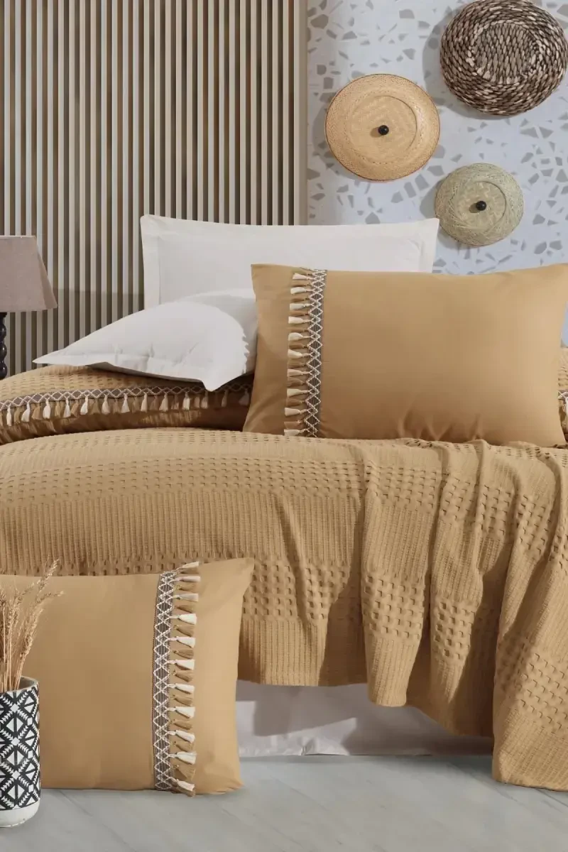 двуспальный комплект пике, хлопковое пике, пике горчичного цвета, пике 144 нити, комплект пике в стиле бохо, бутиковое пике, хлопковая наволочка, дышащее пике, летнее пике, гипоаллергенное пике
