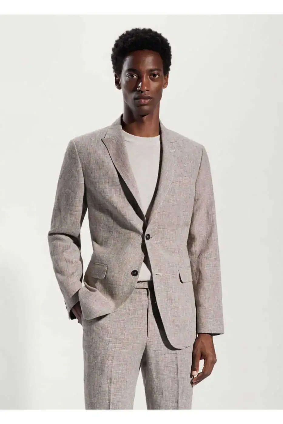 Bu **100% zigʻir matodan ishlangan blazer pidjak** bilan oqlangan va qulay koʻrinishga erishingiz mumkin. Tor kroyi va tiklangan yoqasi bilan ushbu blazer tanangizga ajoyib mos keladi. Old tomondan tugmachalar bilan yopiladi, koʻkrak qismida tikilgan choʻntagi va old tomonda ikkita qopqoqli choʻntagi mavjud boʻlib, u uni ham amaliy, ham moda qiladi. Uzun qoʻllari va tugmachali manjetlari klassik koʻrinish beradi. Qoʻshaloq yirtiqlar qoʻshimcha harakat erkinligini taʼminlaydi. U toʻliq astarli va ichki choʻntagiga ega va modelning boʻyi 187 sm va 50 oʻlcham kiyadi. Ozgina torroq kesimiga ega Slim-Fit kostyum tanaga ozroq mos keladi. Klassik kostyumga juda tor kesim qoʻshishni istamaydiganlar uchun idealdir. Slim-Fit kostyumining turli xil modellari mavjud: ikki qatorli, zigʻir, jun va klassik kostyumlar, endi esa qayta ishlangan poliesterdan ham tayyorlanadi. Agar kamroq rasmiy koʻrinishga ega boʻlishni istasangiz, uni kozok yoki futbolka bilan birlashtiring yoki maxsus kunlar uchun klassik koʻylak va galstukni tanlang. 100% zigʻir, astar: 53% poliester, 47% viskoza. Parvarish boʻyicha koʻrsatmalar: * Yuvish mumkin emas * Oqartirgichdan foydalanmang * Eng koʻp 110°C da dazmollang * Perxloretan quruq tozalashni qoʻllang * Kir yuvish mashinasida quritilmaydi