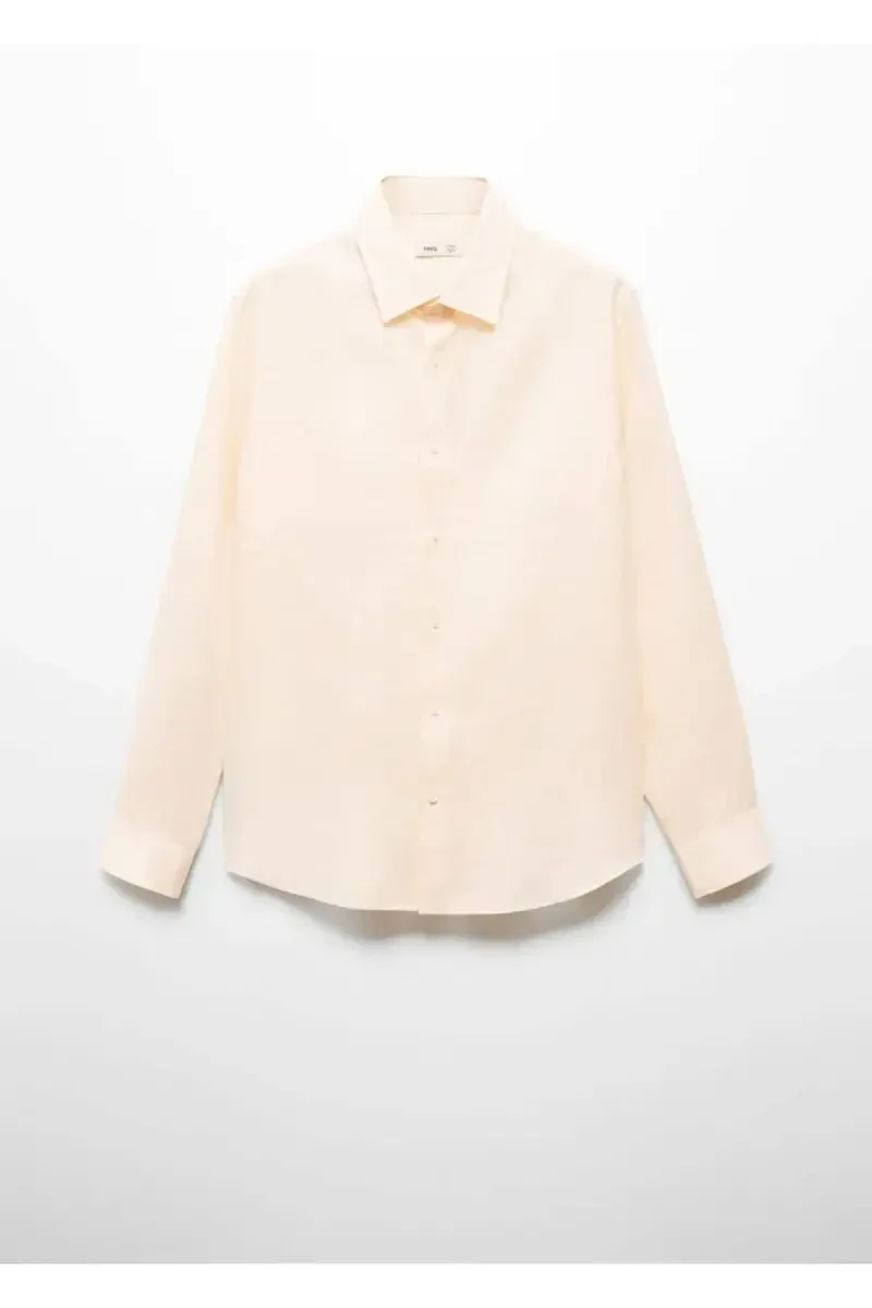 Keten Ko'ylak - Pushti-to'q sariq | Regular Kesimli Yozgi Erkaklar Ko'ylagi