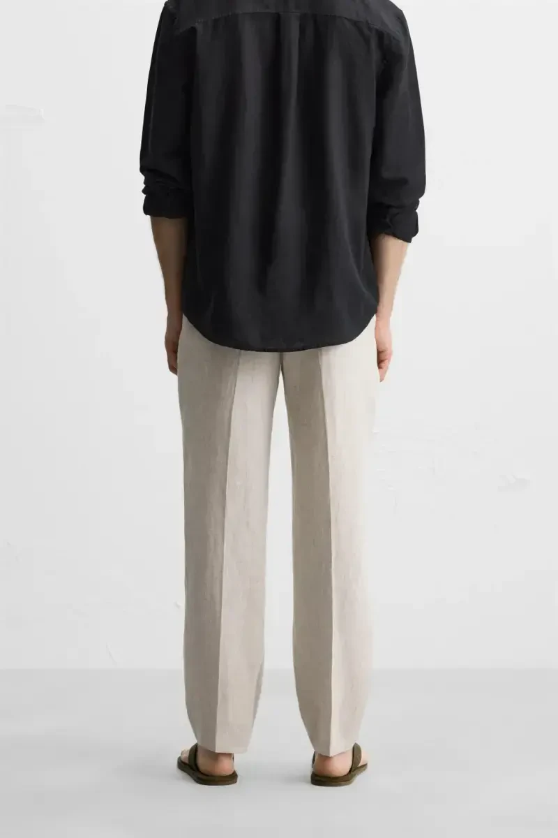 Mahsulotning uzoq umr ko'rishi uchun etiketkadagi yuvish ko'rsatmalariga rioya qiling. Zig'ir matoning tabiiy tuzilishi tufayli birinchi yuvishda biroz qisqarishi mumkin. Modeldagi o'lcham 32. Mahsulot ranglari studiya suratlarida yorug'lik tufayli farq qilishi mumkin.