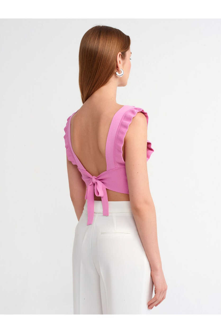 10546 Трикотажный топ с V-образным вырезом и оборками - Розовый - Стильный и комфортный стиль