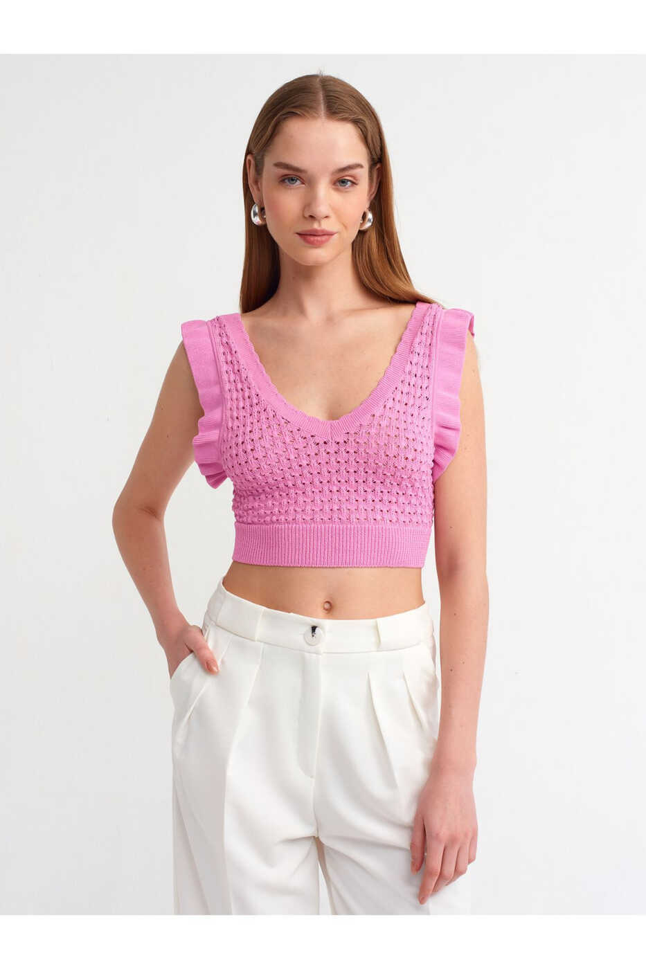 You can easily use the 10546 V Neck Frilled Knit Crop everywhere, from your daily combinations to your stylish looks on special days. It perfectly matches with jeans, skirts, leggings and shorts, adding a feminine touch to your style.
