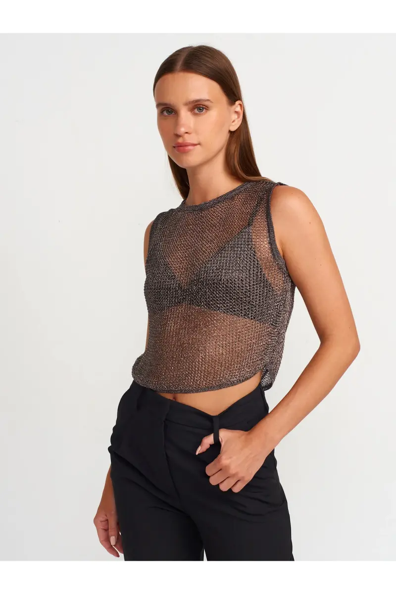 10598 Transparan Parlak Triko Bluz-Çinko-Çinko