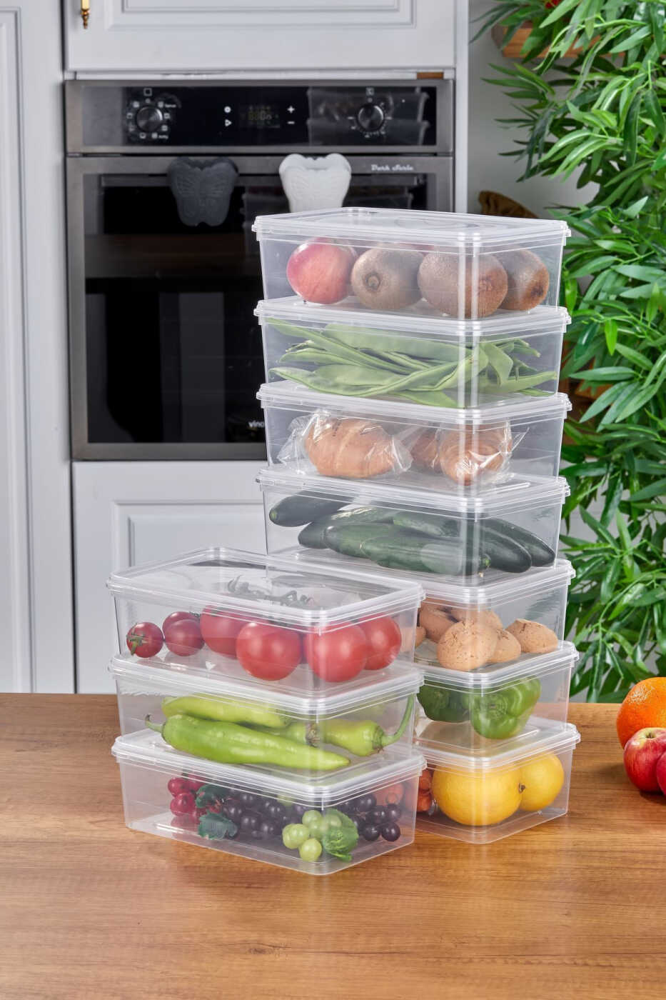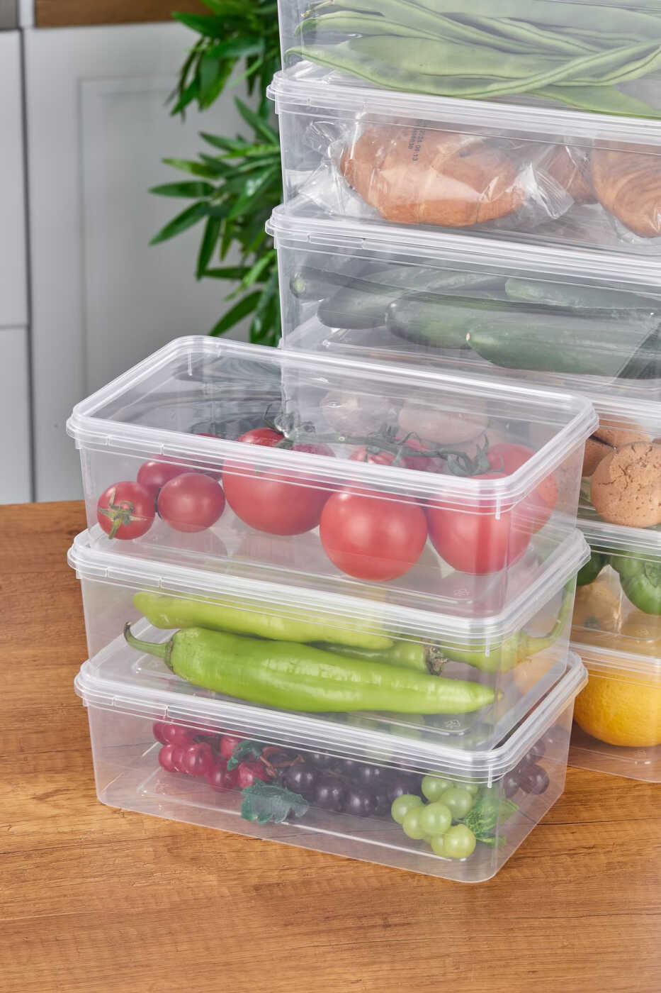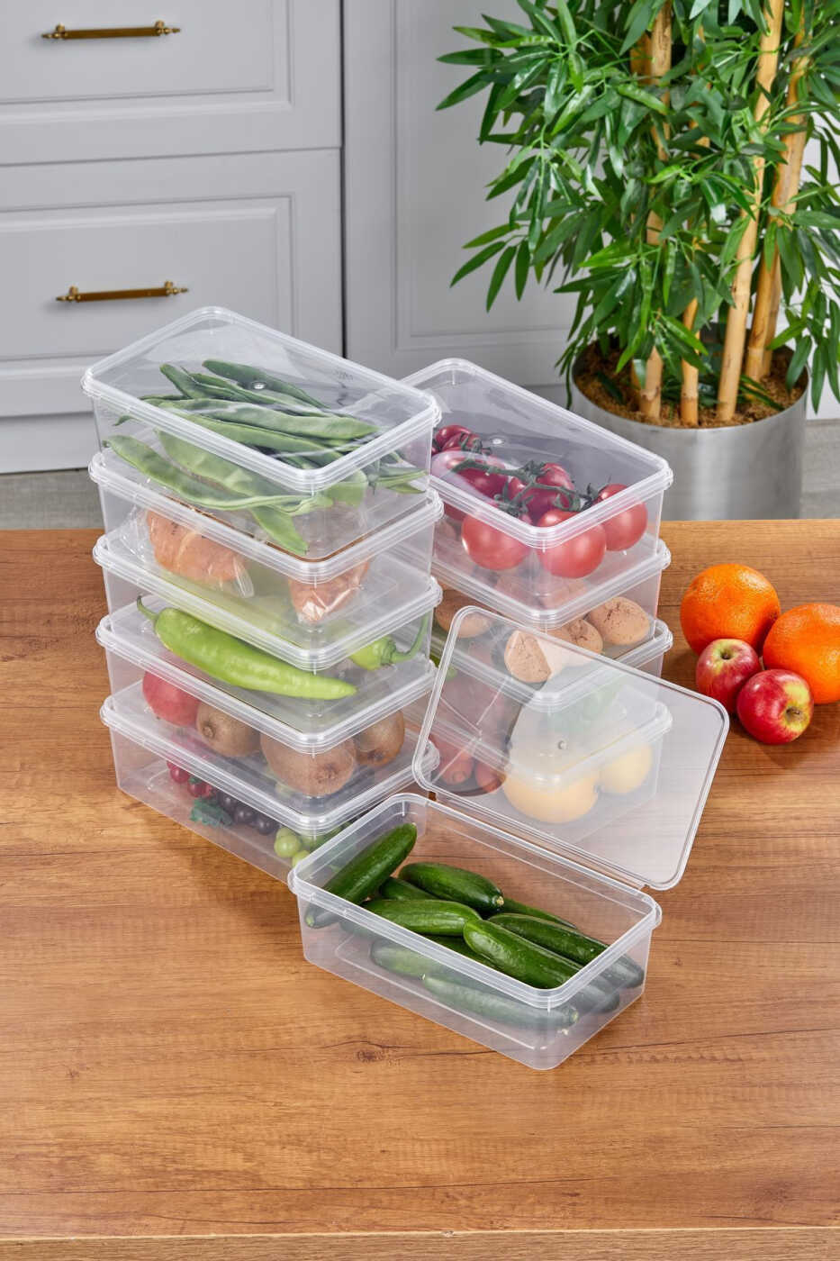 10'lu Buzdolabı Organizer Kendinden Kapaklı Mikrodalga Difrize Uygun 2000 ML Dikdörtgen Saklama Kabı