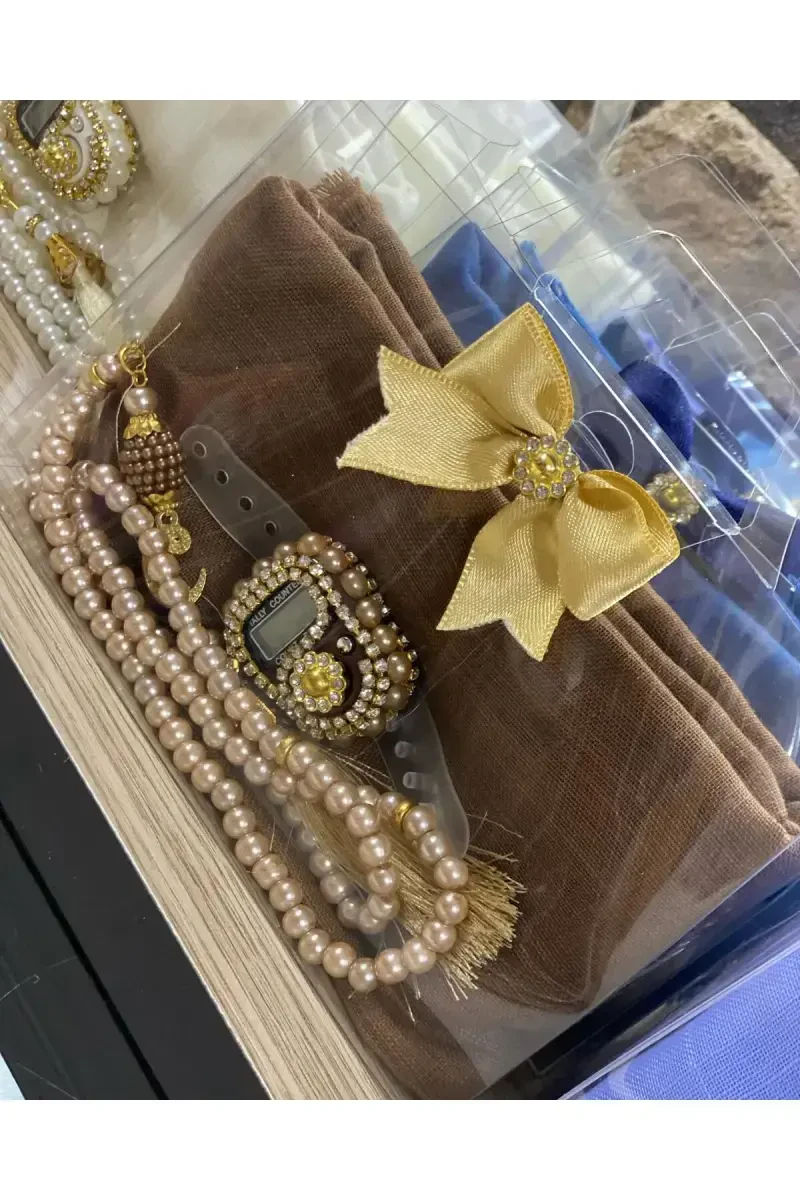 Umre hediyelik, Hac hediyelik, Kadın hediyelik seti, Pamuk tülbent, Cam inci tesbih, Taşlı zikirmatik, Vizon, Manevi hediye, Özel gün hediyesi, İslami hediye