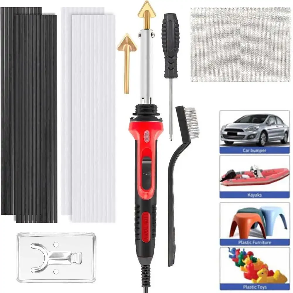 110V/100W Plastic Welding Kit is a comprehensive solution for repairing a wide range of plastic items. This kit is perfect for both beginners and experienced users, offering a fast and effective way to mend car bumpers, dashboards, kayaks, and other plastic components. With its rapid heating capability, you can start your repairs quickly and efficiently. The kit includes 40 welding rods, multiple tips, and various accessories, providing everything you need for successful plastic welding projects. Its ease of use makes it an ideal choice for anyone looking to fix broken or damaged plastic items without the need for expensive replacements.