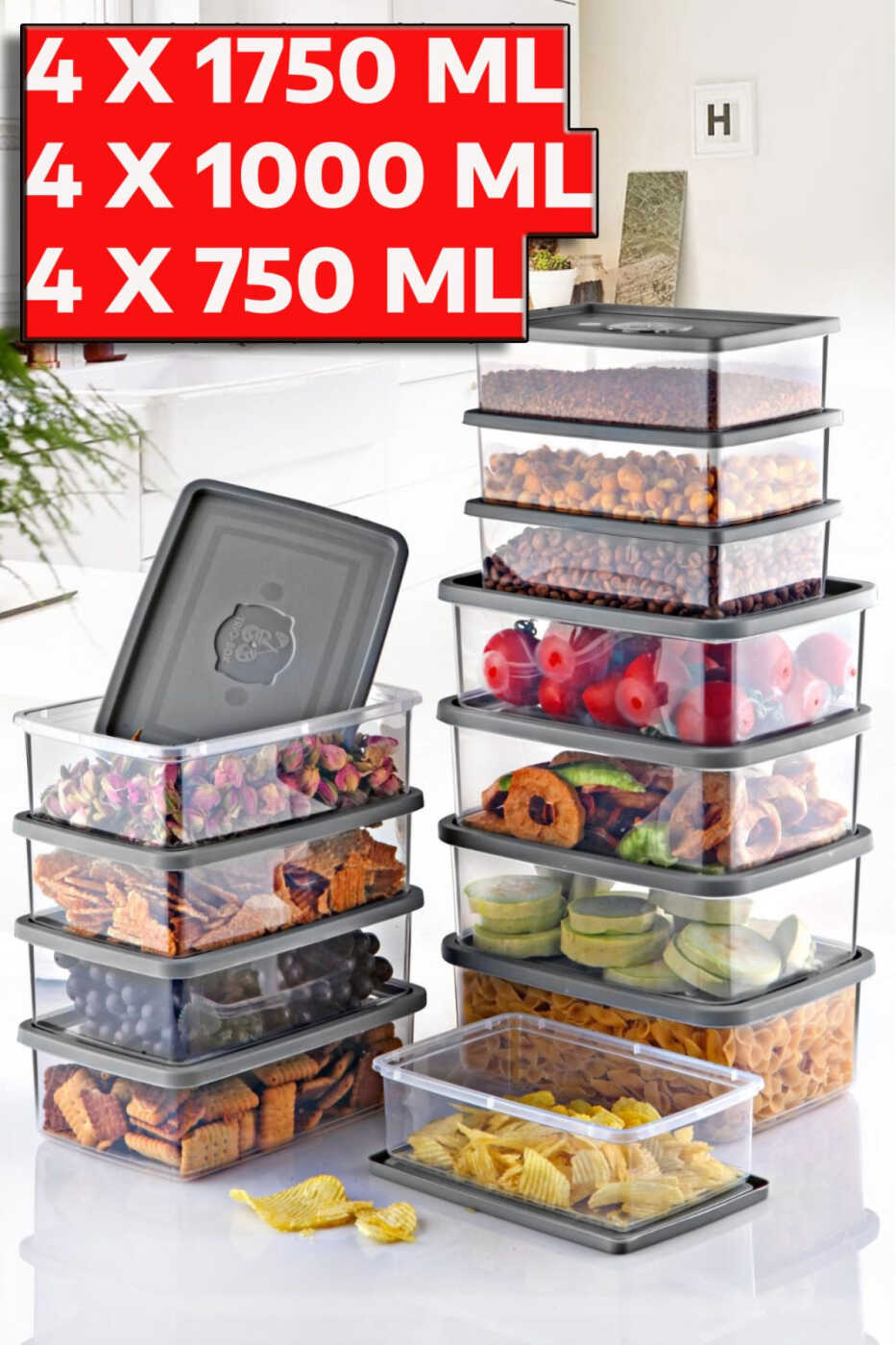 Available in three different sizes (0.75 Lt, 1 Lt, 1.5 Lt), this practical set allows you to store and organize your food safely. Being microwave and freezer safe makes it ideal for heating and freezing your meals.