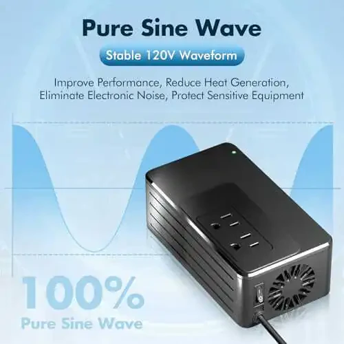 Mahsulot sof sinus to'lqin texnologiyasi bilan ishlaydi, qurilmalaringizga barqaror va xavfsiz energiya ta'minlaydi. Shuningdek, u atigi 2 funt og'irlikda, juda engil, shuning uchun sayohat sumkangizda ko'p joy egallamaydi.