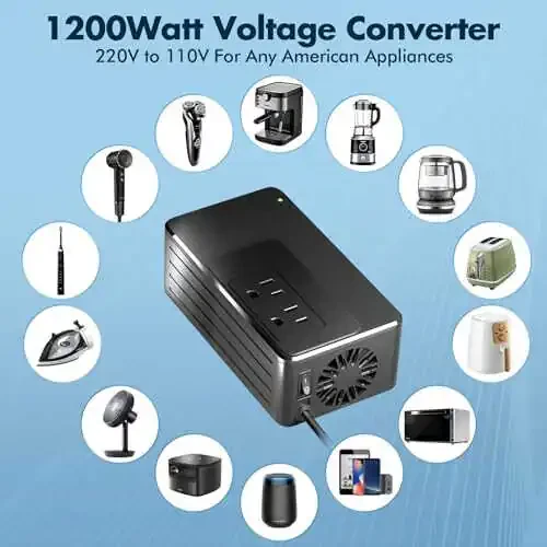 Butun dunyo bo'ylab sayohat qiluvchilar uchun zarur narsa! 1200W Universal Sayohat Adapteri Konvertori 220V ni 110V ga aylantiradi, bu sizga elektron qurilmalaringizni dunyoning istalgan joyida ishlatish imkonini beradi. Soch fenlari, tekislovchilar, jingalak temirlar, qahva tayyorlash mashinalari va boshqalar kabi yuqori quvvatli qurilmalar uchun idealdir.