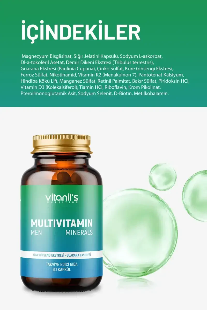 Специально разработанный для мужчин, 13 Типов Витаминов и Минералов Мультивитамин Минералс Мен 30 Капсул предназначен для обеспечения вас необходимыми витаминами и минералами каждый день. Содержащий корейский женьшень и гуарану, он повышает ваш уровень энергии, укрепляет вашу иммунную систему и поддерживает ваше общее здоровье.