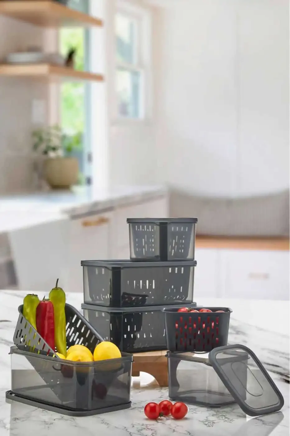 sovutgich saqlash, sovutgich tartibga solish, filtrli saqlash qutilari, antrasit saqlash qutilari, oshxona tartibga solish mahsulotlari, yangi oziq-ovqat saqlash, oqishga chidamli saqlash qutilari