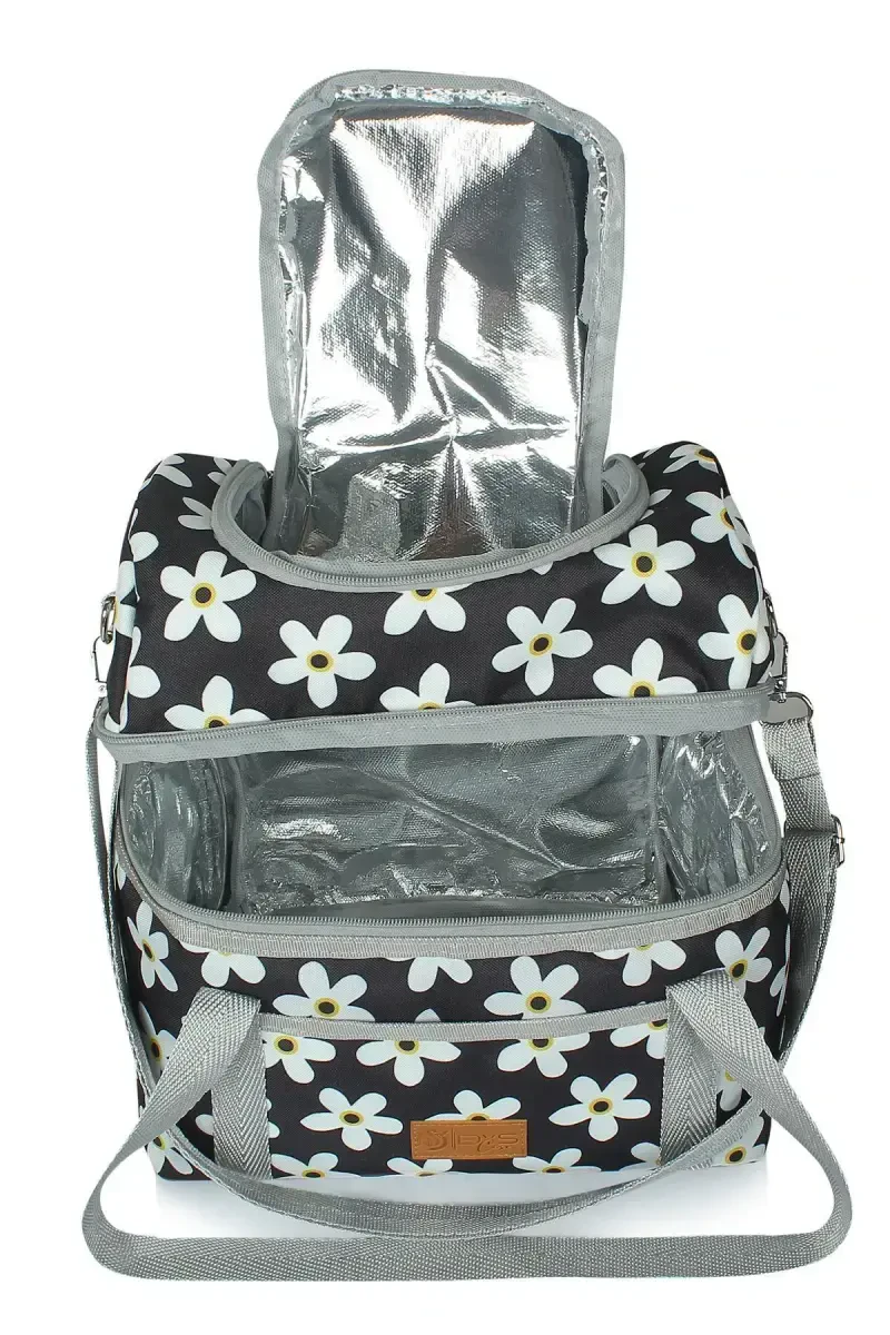 Эта сумка для переноски еды не только переносит ваши продукты и напитки, но и отражает ваш образ жизни. Черный узор в виде ромашек придает сумке современный и элегантный вид, благодаря чему вы будете привлекать внимание в любой обстановке. Собираетесь ли вы на работу, в школу, на пикник или в поход, эта сумка станет вашей незаменимой частью. Эта сумка, которую можно использовать долгие годы благодаря своей долговечной структуре, также является экологически чистым выбором. Изготовление из материалов, не содержащих БФА, защищает ваше здоровье, а экологичная структура помогает вам выполнять свои обязательства перед окружающей средой. Будьте стильными и практичными с сумкой для переноски еды объемом 15 л!