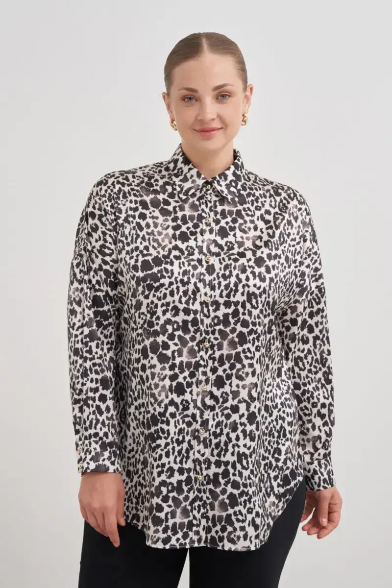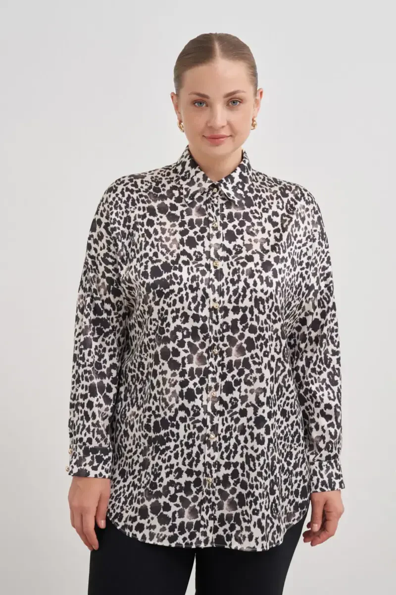 Раслабленная блузка из хлопка с круглым вырезом и длинными рукавами