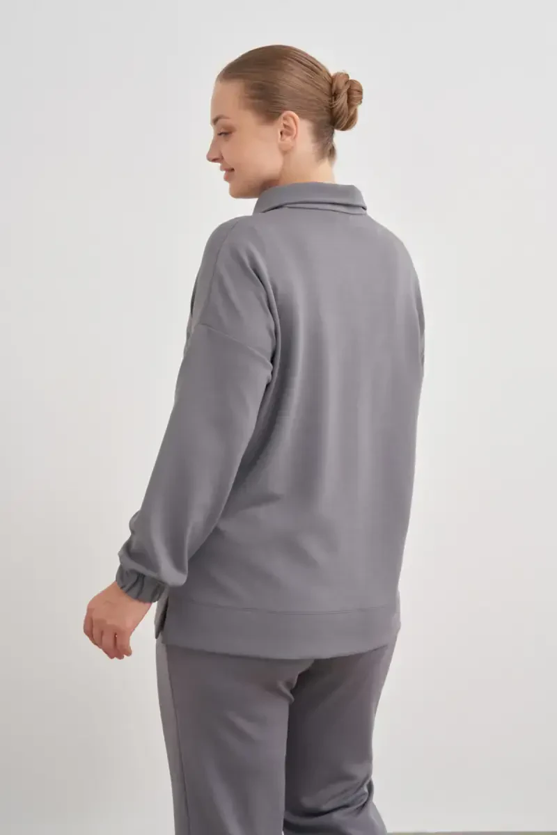 Ayollar uchun oq ko'ylak yoqali asimmetrik tunika TNK-19000034