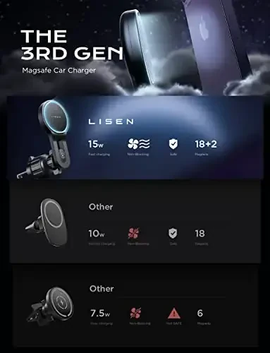 LISEN for 15W MagSafe Araç Şarj Cihazı, [Daha Güvenli ve Hızlı] Havalandırma Manyetik Kablosuz Araç Şarj Cihazı, iPhone 16 Pro Max Plus 15 14 13 12 ve MagSafe Kılıflı Samsung telefonlar için idealdir. Uzman Tutucu, sürücülerin deneyimini mükemmelleştirmek için tasarlanmıştır. Engellemeyen/MagSafe özelliği ile her sürücüye hitap eder. Uzatma kolu ve serbest açı ayarı sayesinde, aracınıza en uygun, konforlu veya canlı ve ferahlatıcı bir sürüş atmosferi yaratabilirsiniz. Bu yenilikçi cihaz, sadece üstün performans sunmakla kalmaz, aynı zamanda tüm kullanıcılara benzersiz ve estetik açıdan hoş bir deneyim sunar. Sektörde yeni standartlar belirleyen ve bir araç aksesuarının yapabileceklerinin sınırlarını genişleten öncü bir üründür. MagSafe manyetik şarj teknolojisini sorunsuz bir şekilde entegre eden öncü bir üründür. Tek Tıkla Serbest Bırakma özelliği, telefonunuzu kolayca yerleştirme ve çıkarma kolaylığı sağlar. Karmaşık kurulum adımlarıyla uğraşmanıza gerek kalmaz, sürüşünüze odaklanmanızı sağlar. LISEN MagSafe 3 araç şarj cihazı, iPhone 15/14/12/13 serisi ve MagSafe şarjı destekleyen diğer telefonlar için uygundur. Tüm şarj ihtiyaçlarınızı karşılamak için tek elden bir çözüm sunuyoruz. Yatay ve Dikey Havalandırmalarla uyumludur. Bu araç telefonu tutucusu için çelik kanca klipsi, sıradan olanlardan %50 daha uzundur. Piyasadaki zayıf uyumluluk ve kolay düşme sorunlarını çözen çoğu Yatay ve Dikey havalandırma ile uyumludur. Tüm araç havalandırma ihtiyaçlarını karşılamak için iPhone araç tutucusunu geliştirdik. Yuvarlak havalandırmalar uymayabilir. LISEN olarak, yüksek çevresel ve sosyal standartlara uygun şekilde sürdürülebilir bir şekilde faaliyet gösteriyoruz. Hem kendi operasyonlarımızda hem de tedarikçilerimizle birlikte iş yapma şeklimize sürdürülebilirliği giderek daha derinden entegre etmeye devam ediyoruz. LISEN Araç Kablosuz Şarj Cihazı Montajı ayrıca 12 ay garanti ile birlikte gelir. Uzman ekibimiz her zaman yanınızdadır.