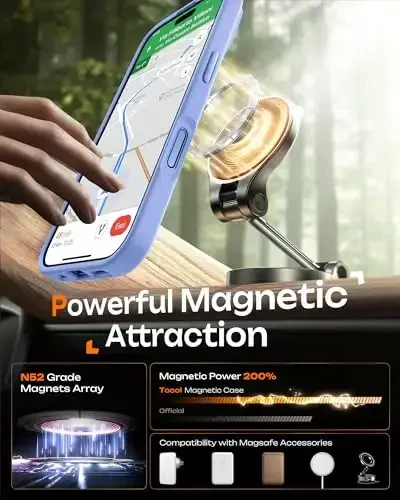 TOCOL for 17 Case — это чехол, разработанный для вашего iPhone 17, сочетающий в себе превосходную защиту и стиль. Этот чехол надежно защищает каждый уголок вашего телефона и привлекает внимание своим элегантным дизайном. Эта модель, ориентированная особенно на безопасность камеры, отличается встроенным магнитным кольцом и устойчивой к падениям конструкцией. Благодаря прозрачной матовой поверхности он сохраняет оригинальную красоту вашего телефона и обеспечивает удобный захват. TOCOL for 17 Case — идеальное решение для защиты и стиля вашего телефона как для повседневного использования, так и для особых случаев. Благодаря расширенной функции магнитного кольца вы можете без проблем использовать свой iPhone 17 с зарядными устройствами Magsafe. Мощные магниты обеспечивают надежную фиксацию телефона во время зарядки и облегчают процесс зарядки. Он также отлично совместим с магнитными автомобильными держателями, что позволяет удобно использовать телефон во время вождения. Безопасность камеры — одна из важнейших особенностей чехла TOCOL for 17. Конструкция задней камеры «все включено» защищает объектив камеры от царапин и ударов. Рамка чехла на 0,8 мм выше, чем объектив камеры, что предотвращает прямой контакт объектива с поверхностью и обеспечивает неизменно высокое качество фотографий. Чтобы обеспечить превосходную защиту от падений, этот чехол изготовлен из материала TPU и имеет четыре слоя амортизации. Благодаря технологии воздушной подушки 360° он предотвращает повреждение вашего телефона даже при падении с высоты до 3,6 метра. Эта функция является большим преимуществом, особенно для тех, кто ведет активный образ жизни. Тонкий и прозрачный матовый дизайн обеспечивает удобство использования, сохраняя при этом стиль вашего телефона. Задняя поверхность чехла оставляет приятные ощущения в руке и предотвращает скольжение. Сверхтонкий профиль 0,05 дюйма придает вашему телефону элегантный вид, не искажая его оригинальный дизайн. Светло-голубой цвет придает вашему телефону свежий и современный вид. TOCOL for 17 Case обеспечивает идеальный баланс между эстетикой и защитой, обогащая ваш опыт использования iPhone 17.