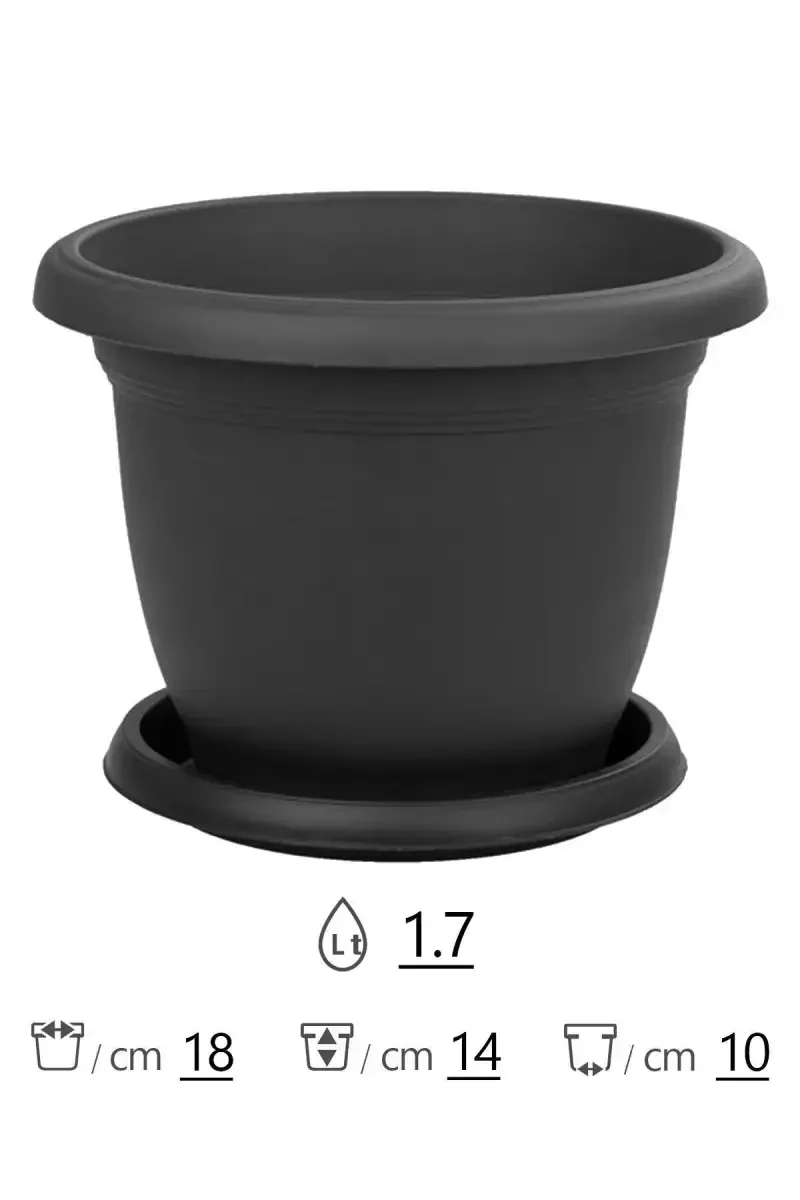 Antrasit Gri Yuvarlak Saksı 1.7L | Küçük Boy, Tabaklı, Mat Plastik Villa No3 | İç & Dış Mekan Bitki Saksısı