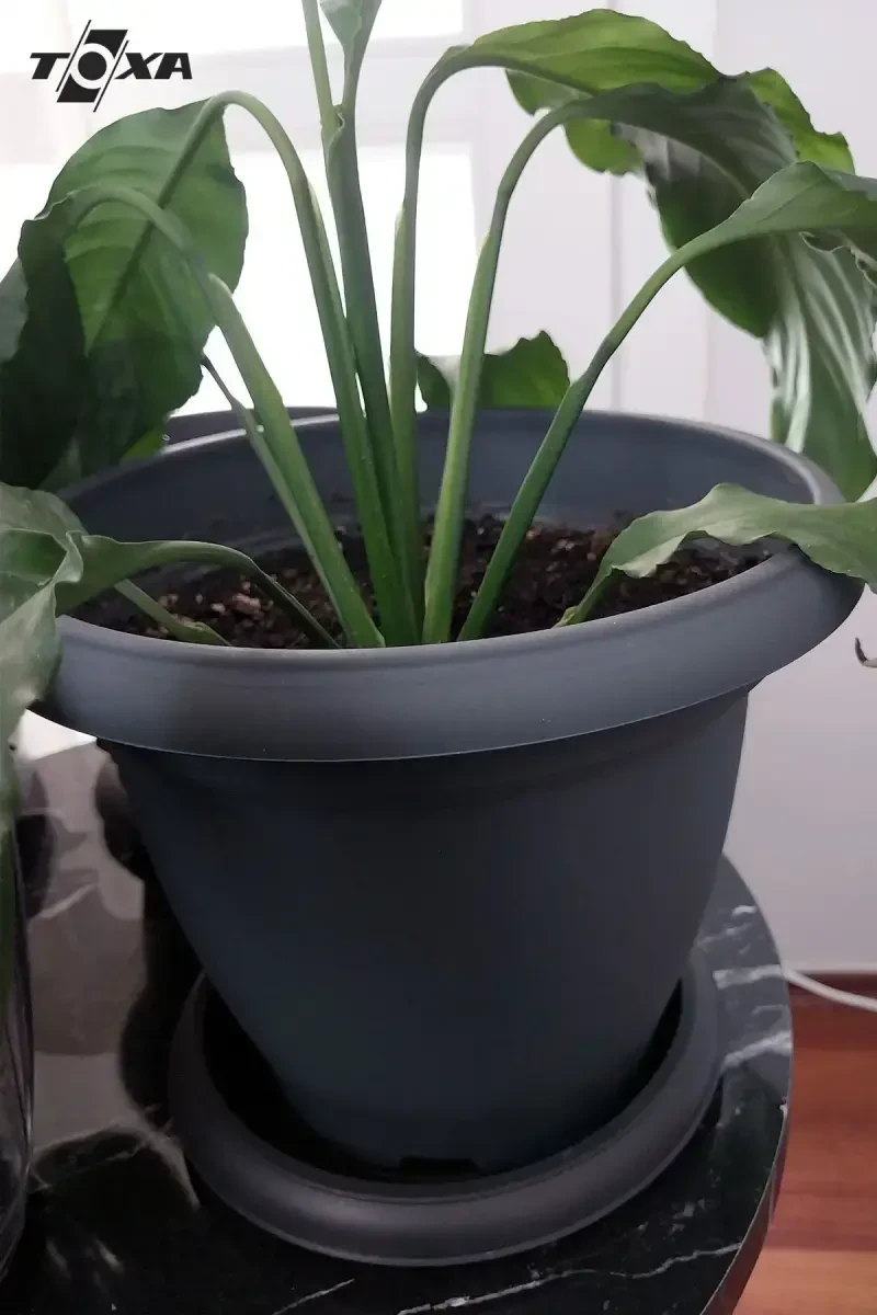 saksı, bitki saksısı, antrasit saksı, plastik saksı, küçük saksı, yuvarlak saksı, tabaklı saksı, villa no3, iç mekan saksı, bahçe saksısı