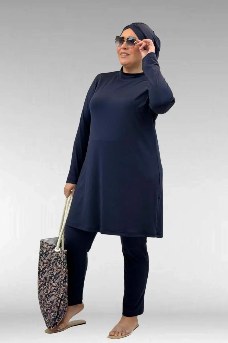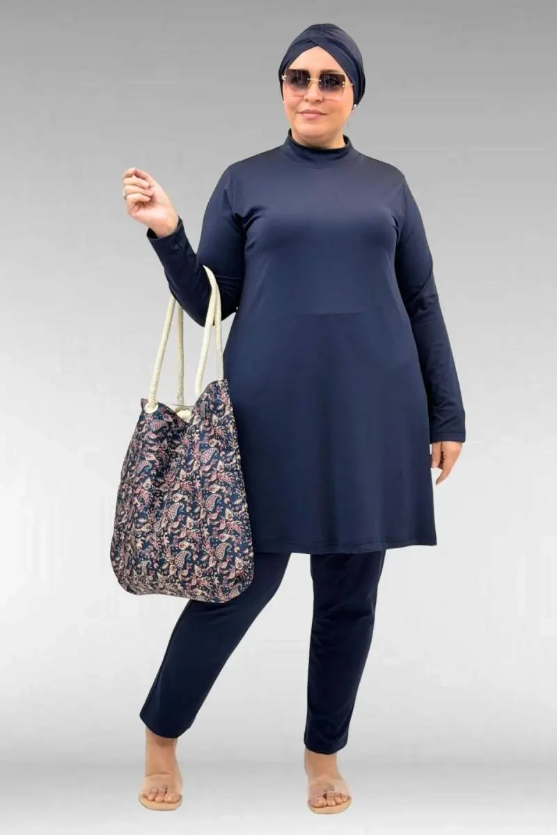 1740 Büyük Beden Düz Renk Tesettür Mayo - Lacivert