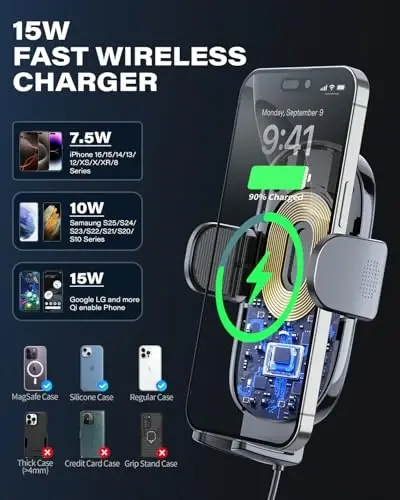 The 1Zero Solid Car Truck Phone Mount Wireless Charger Holder will completely change your in-car phone usage. This product is compatible with various phone models such as iPhone 15 Pro Max Plus 14, 13, 12, 11, XS, X, Samsung S24 Ultra, S23, S22, S21, S20, Pixel 9 Pro XL, 8, 7, 6, 5, 4. Everything is covered, including malfunctions, repairs, part replacements, labor, and shipping at no additional cost. Your product is also protected against failures after the manufacturer's warranty expires and provides protection against sudden voltage surges from day one. Experts in the field are ready to assist you 24/7 with installation, connection issues, troubleshooting, and more. You can easily create a request online or by phone, and most requests are approved in just a few minutes. You will receive a gift card for the purchase price of your covered product; in some cases, your product will be repaired or replaced with a new one. This plan must be purchased with a product or within 30 days of product purchase, and pre-existing issues are not covered. Your product also provides comprehensive protection for other eligible products purchased from Amazon. (Excluding products used for commercial or business purposes.) It offers superior protection against malfunctions, damages, drops, and spills. After registering, eligible products purchased in the last year and your future purchases are also protected. You can easily create a request at Asurion.com/amazon and receive a repair, replacement, or refund of the purchase price (excluding taxes). There are no hidden fees, and you have the right to claim up to $5,000 in total over a 12-month period. You can cancel at any time if you don't need it, and your plan will renew monthly until canceled. (Coupons used during checkout are not renewed monthly.) The 1Zero in-car phone holder works perfectly in most cars, trucks, SUVs, and automobiles thanks to its durable aluminum tube. It securely holds your phone and keeps it in your line of sight, at your fingertips. With one-handed operation, you can easily insert and remove your phone. Its flexible structure allows you to use your phone safely. Not only can it be rotated and tilted, but it can also be bent to any angle or shape for easy use and optimal viewing. The hands-free in-car phone holder offers easy navigation, calling, and music listening. The fast wireless car charger offers 15W charging speed for Pixel and LG phones, 10W for Samsung Galaxy phones, 7.5W for iPhone 16 Pro Max Plus 15, 14, 13, 12, 11, XS, 8, and 5W for other Qi-enabled phones. This versatile phone holder stand can be securely mounted on most flat surfaces such as windows, desks, cabinets, and frees up your hands for watching movies, live streaming, browsing recipes, or making video calls. Note: The 1Zero wireless charger does not have an automatic alignment feature. To charge your phone, manually adjust the support feet until the charging coils are properly aligned.